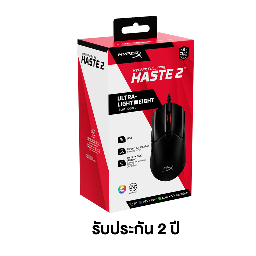 HyperX Pulsefire Haste 2 ได้รับการออกแบบมาเพื่อให้คุณใช้ประโยชน์ได้อย่างเต็มที่ทุกมิลลิวินาที เมาส์โครงเนื้อตันรุ่นปรับปรุงมีน้ำหนักเพียง 53 ก.3 และมาพร้อมกับชุดส่วนประกอบสมรรถนะสูง โดยมีไฮไลท์สำคัญ ได้แก่ เซ็นเซอร์ HyperX 26K ซึ่งสามารถตรวจจับตำแหน่งได้ละเอียดสูงสุดถึง 26,000 DPI พร้อมความเร็วในการติดตามสูงสุด 650 IPS สัมผัสการตอบสนองที่ไวขึ้นและแม่นยำสูงขึ้นด้วยอัตราความไวการส่งสัญญาณ 8000Hz2 ของ Pulsefire Haste 2 และสวิตช์ HyperX ที่รองรับการใช้งานสูงสุดถึง 100 ล้านคลิก เพลิดเพลินไปกับสัมผัสอันเหนือชั้นที่รู้สึกได้ผ่านมือของคุณขณะควบคุมเมาส์ที่มาพร้อมกับแผ่นเทปช่วยในการจับยึด สายพาราคอร์ดที่ยืดหยุ่นสูงเป็นพิเศษ และแผ่นรองเลื่อน PTFE เกรด Virgin