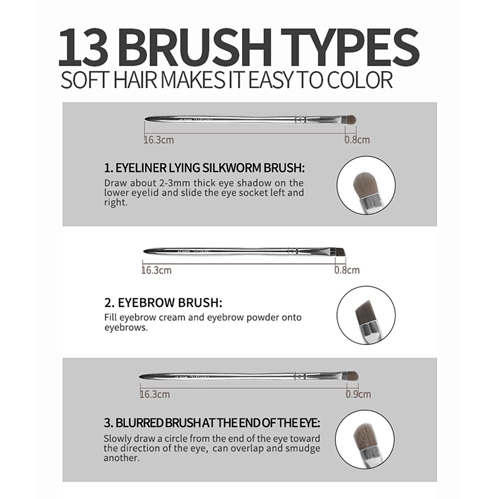 ❤ 1. Essential professional brush set, 13 different brushes. Ergonomic design fits perfectly in the hand
