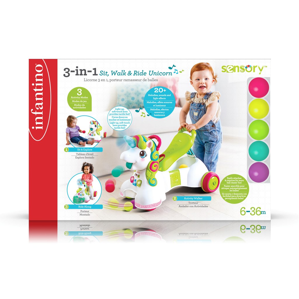 Infantino : 3-in-1 Sit, Walk & Ride Unicorn - เก้าอี้,ม้านั่ง,รถเข็นหัดเดิน (ยูนิคอร์น)