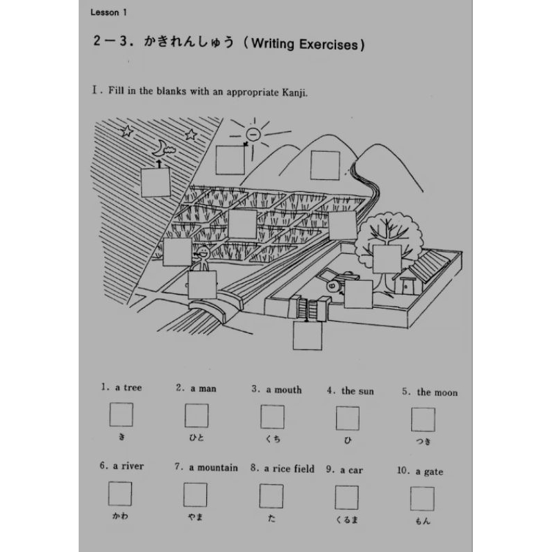 - ภาพประกอบที่อธิบายความหมายของคันจิแต่ละตัว