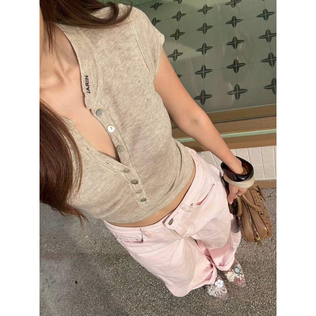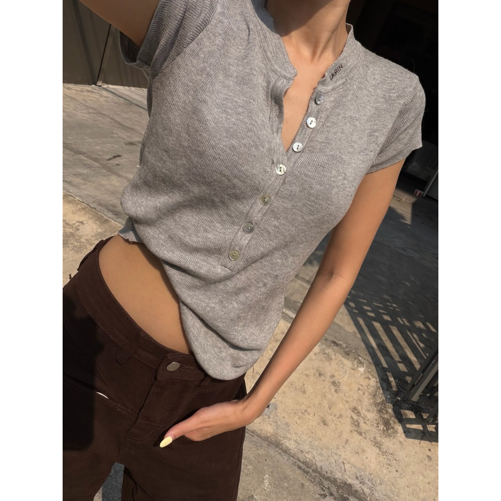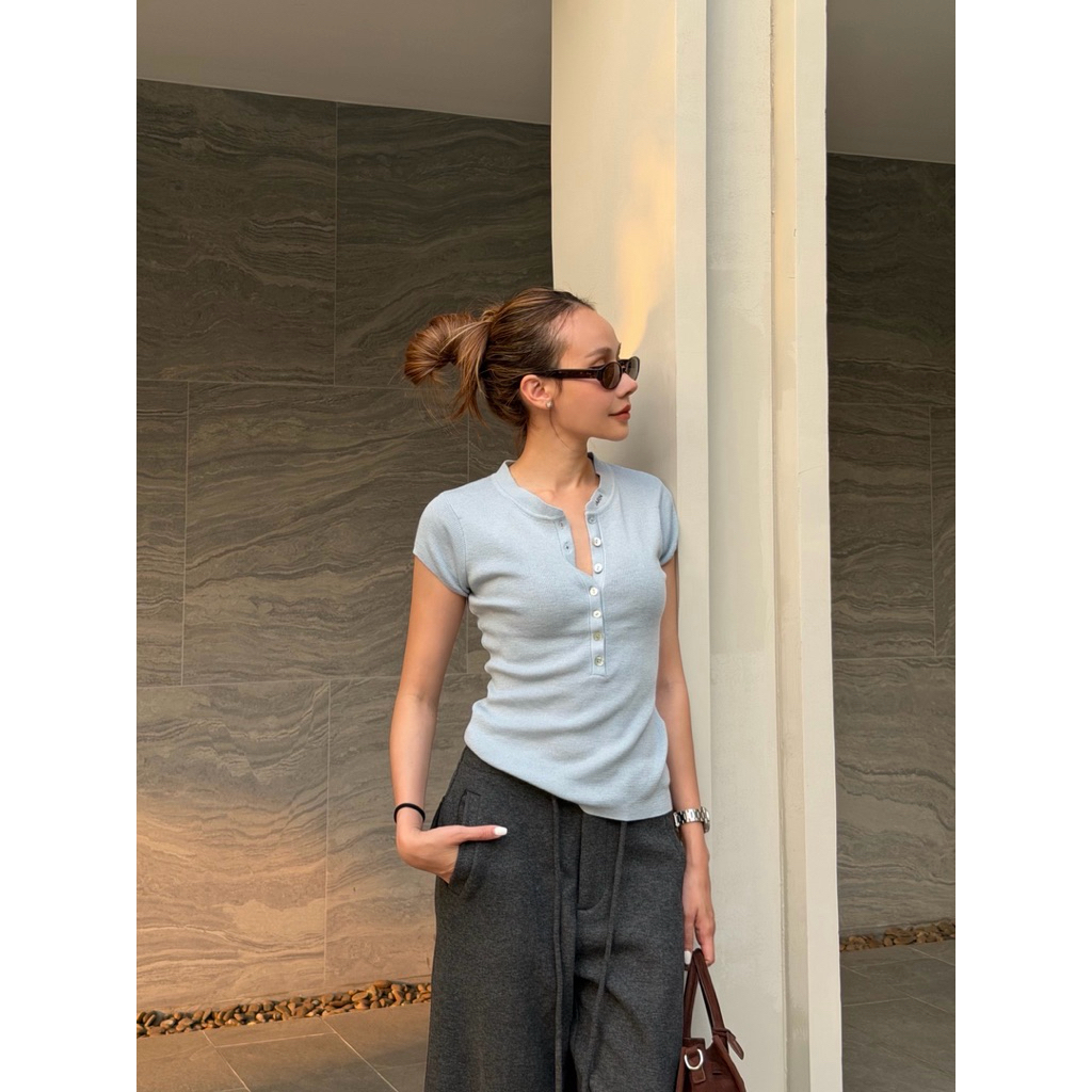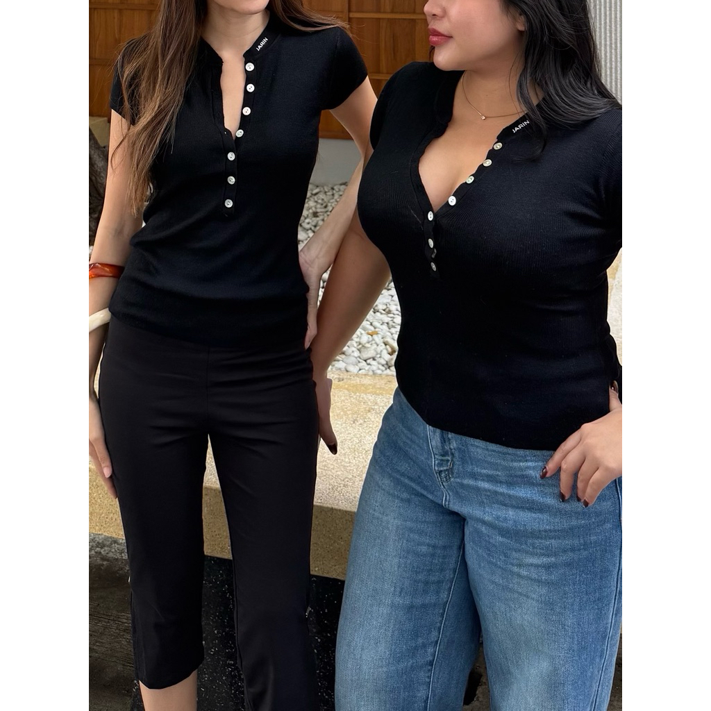 เสื้อไหมพรม ทรงคอปีน กระดุมผ่าหน้า ผ้าใส่สบาย เป็นทรง basic ที่ต้องมีติดตู้