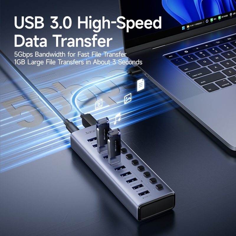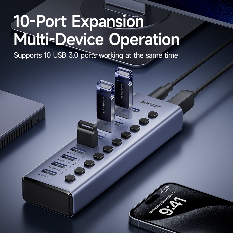 ✨ Jasoz USB 3.0 Multi-Port Hub – Expand More, Transfer Faster, Power Up Smarter!