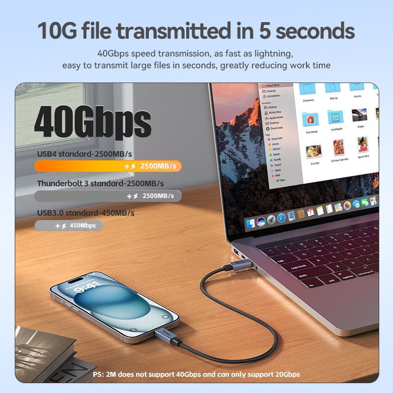 ③ Data transfer up to 40Gbps (2m supports 20Gbps)