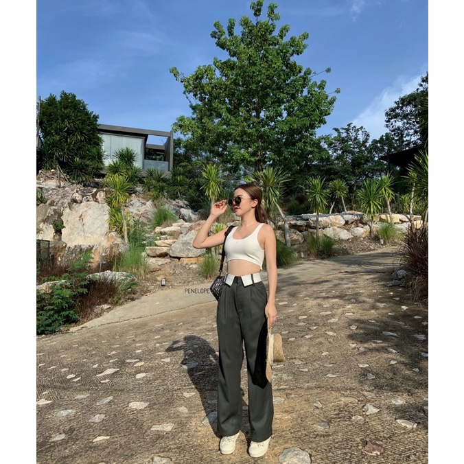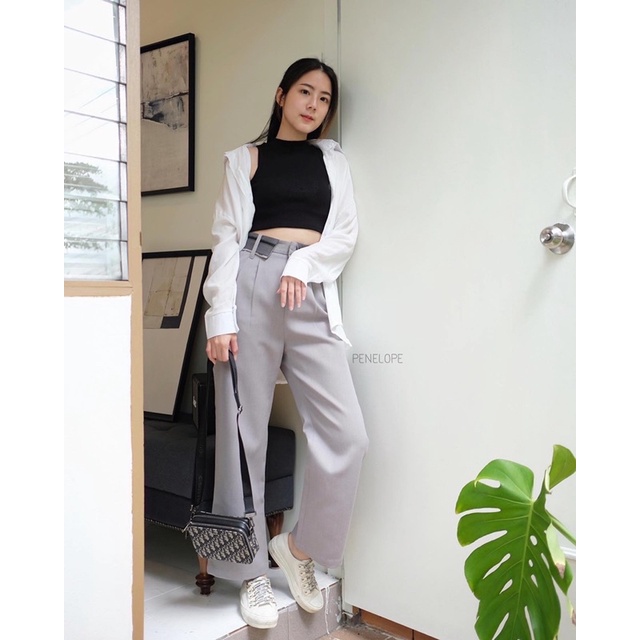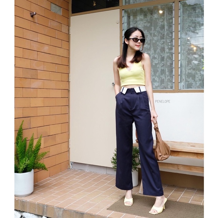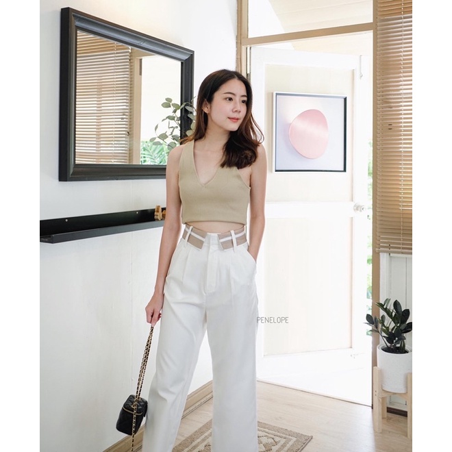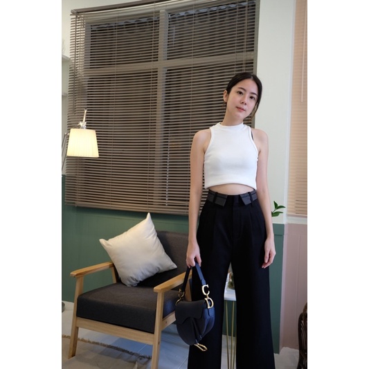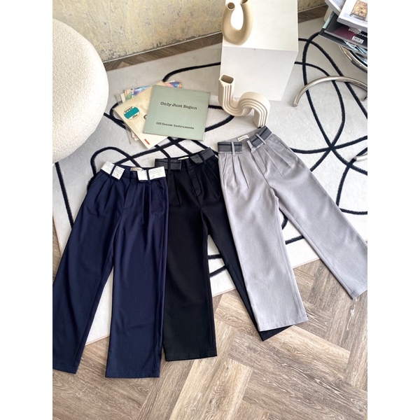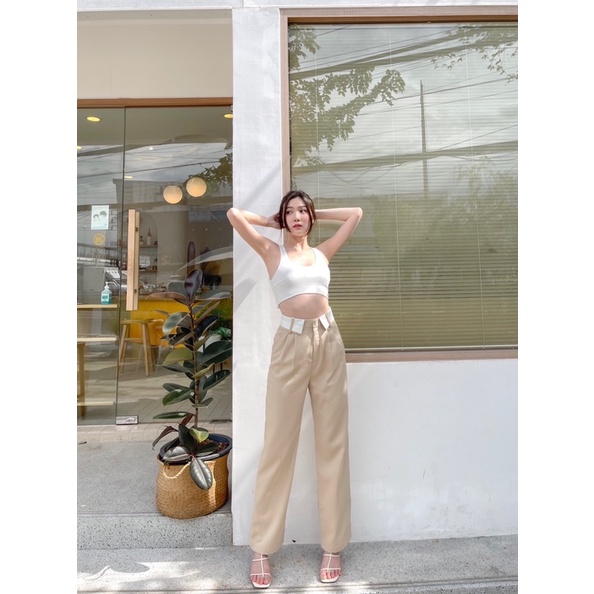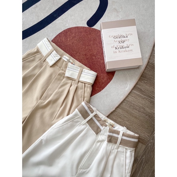 DETAIL: กางเกงเอวพับ แต่งขอบรอบเอว ทรงขาบานตรง ผ้าคอมแบท ใส่สบายมากค่ะ ทรงเอวสูง ดีไซน์จับจีบหน้า มีกระเป๋าด้านข้างใช้งานได้จริง