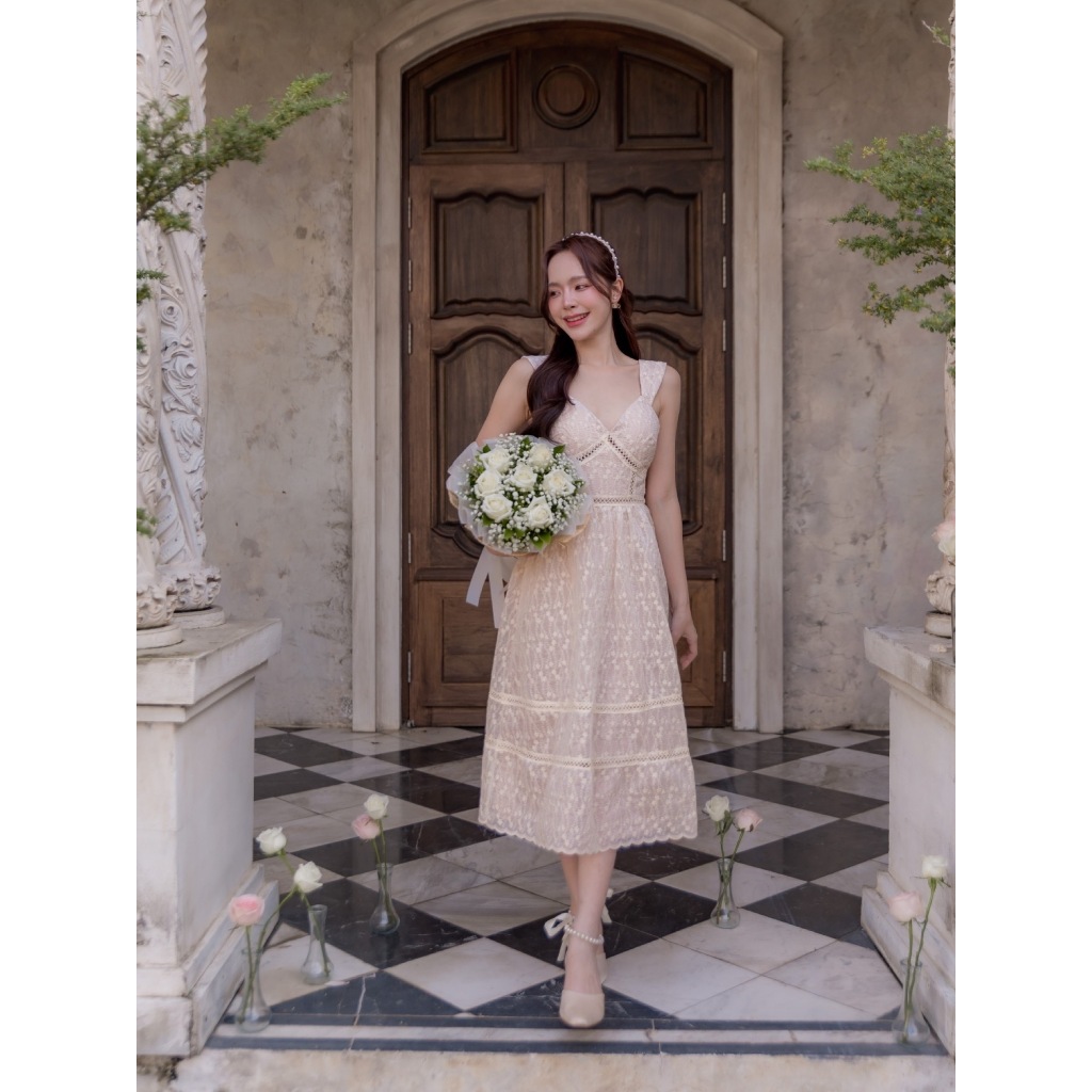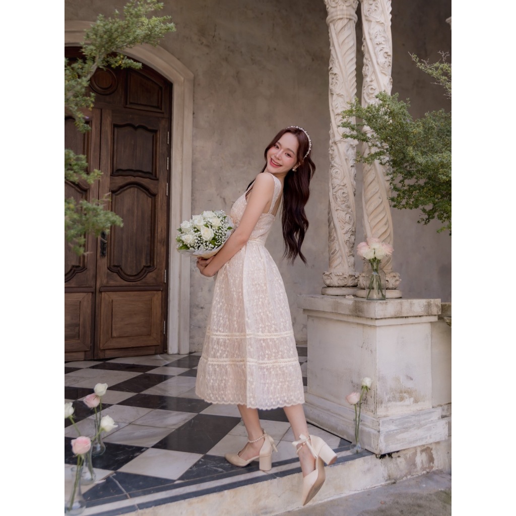 ต้องไปตำ เพราะสมคำล่ำลือเวออร์! ชีเป็นเดรสสายเดี่ยวผ้าลูกไม้ ปักลายดอกสีสวย ช่วงบนแต่งทรงคอร์เซ็ต เก็บขอบฉลุ ดูมีความเซ็กซี่เบาๆ ช่วงกระโปรงจัดทรงสวยเวอร์ มีฟองน้ำ งานซิปหลังและซับใน เอาไปใส่ออกงาน พร้อมโดนเจ้าภาพมองแรงมากแม่!