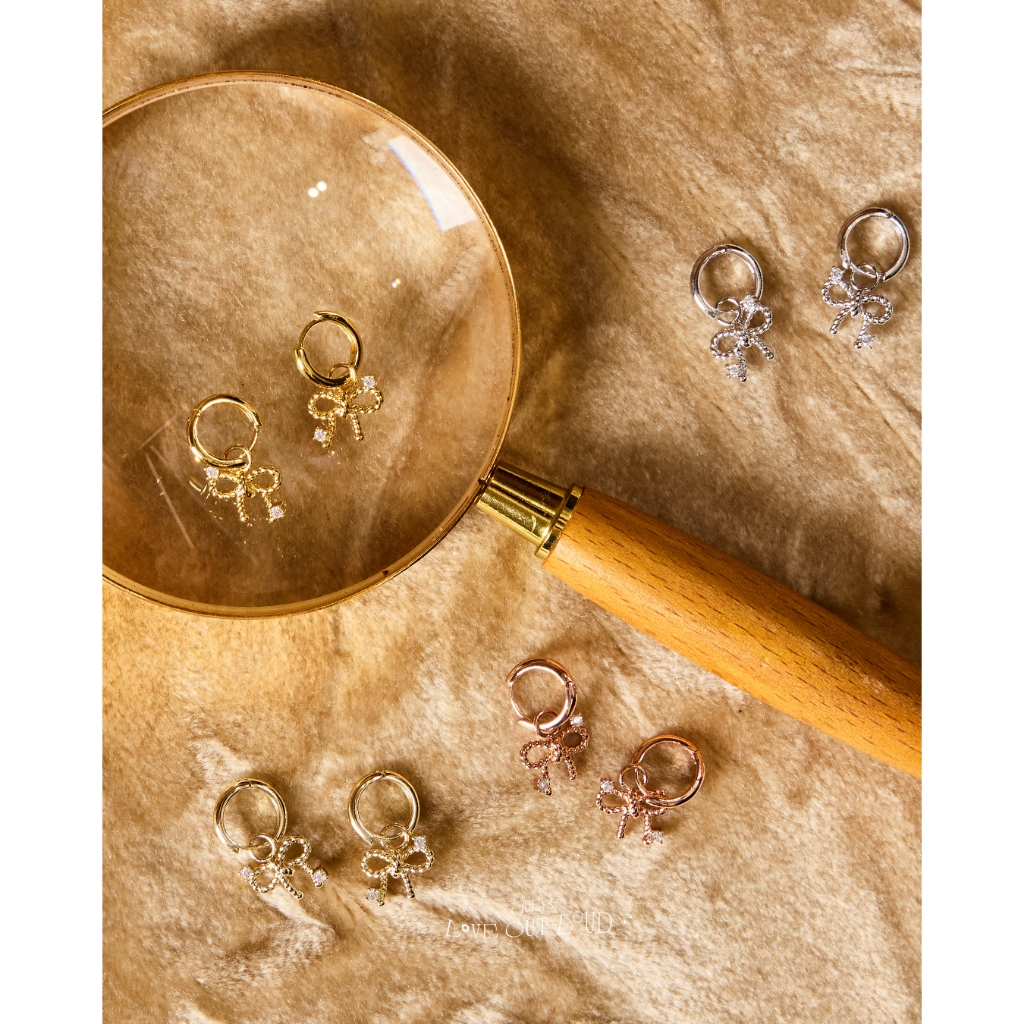 น้อง ribbon bowww สามารถใส่คู่กับต่างหูห่วง หรือใส่แต่ห่วงเรียบๆก็ได้