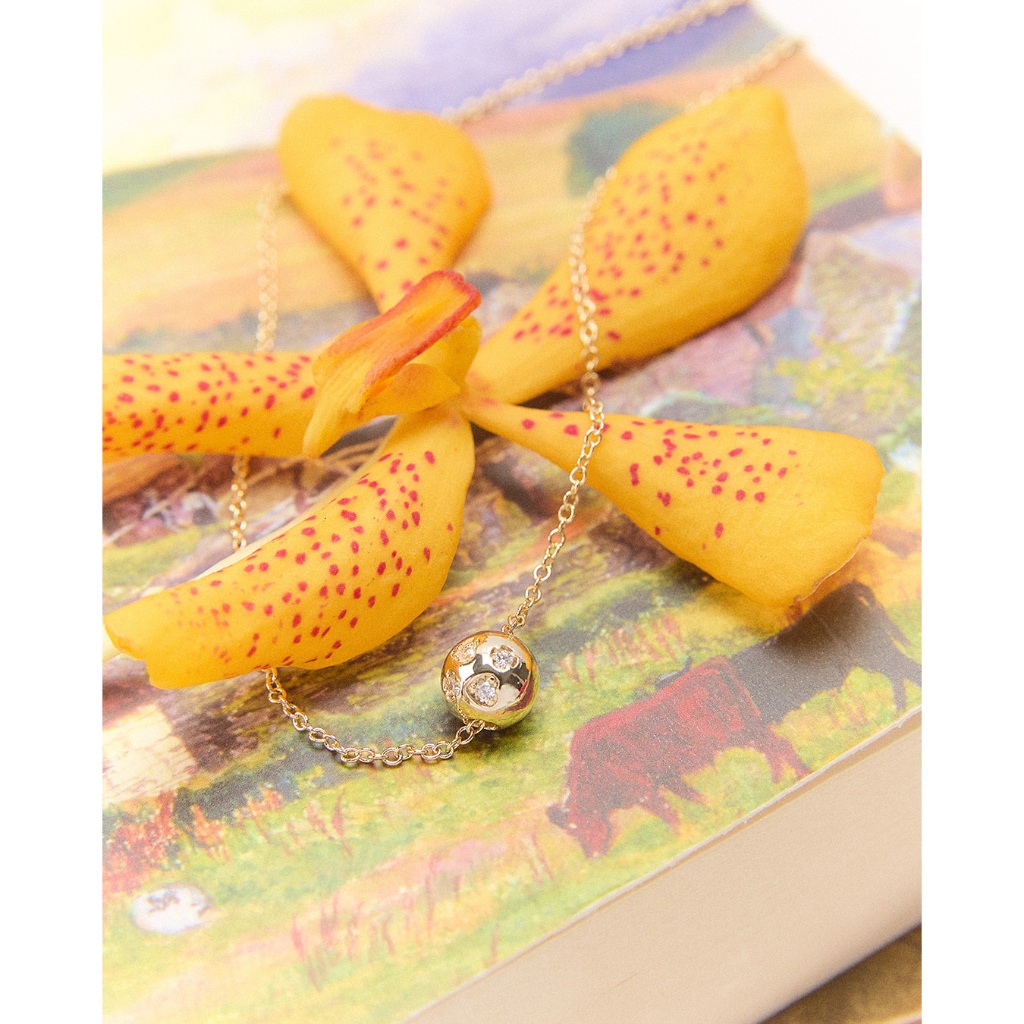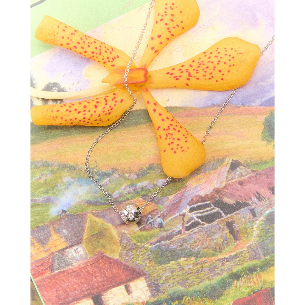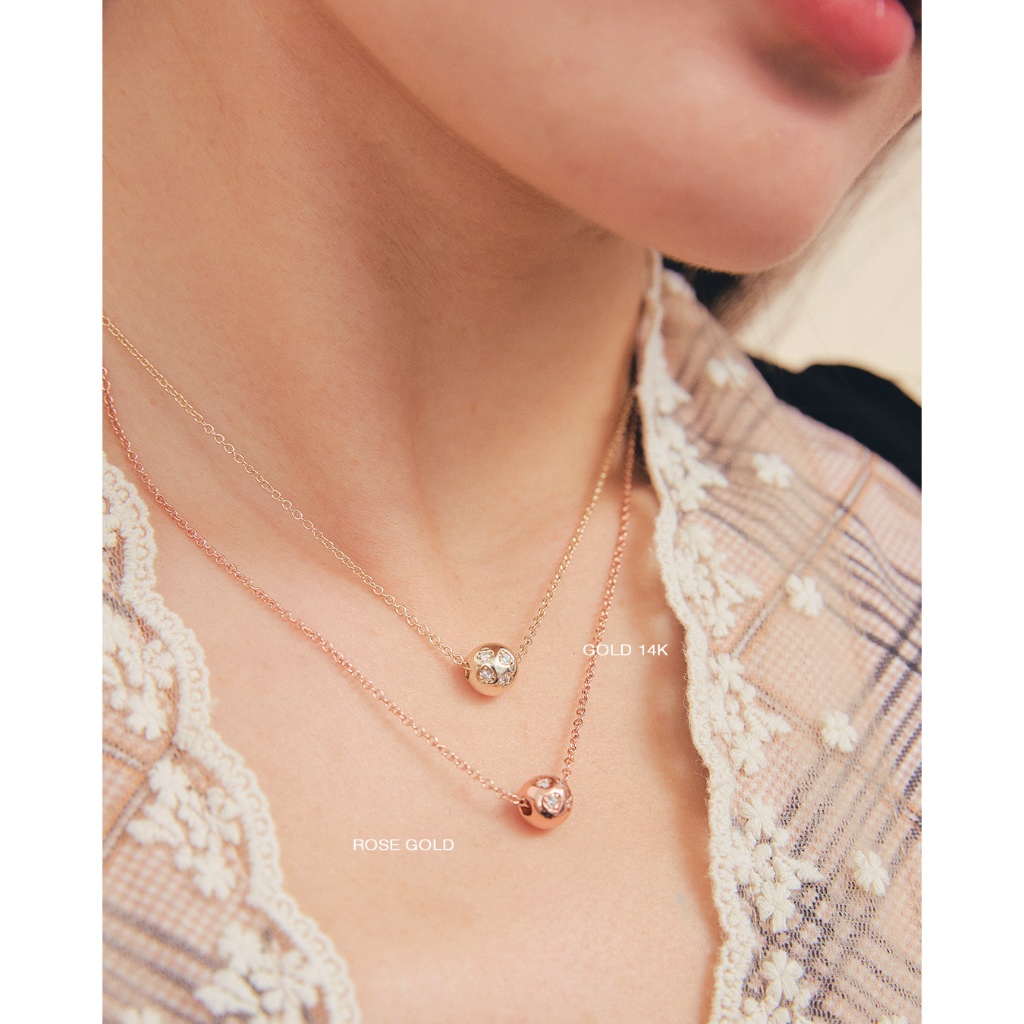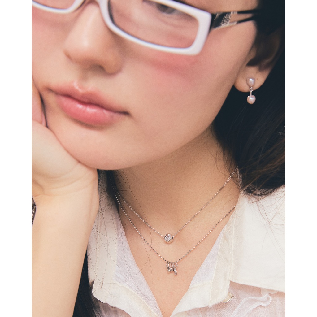 สร้อยคอ small chain มาพร้อมชาร์ม wrecking ball ดีเทลฝังพลอยรูปหัวใจและวงกลม