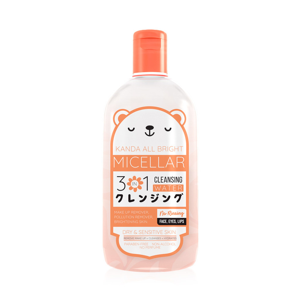 Kanda All Bright Micellar 3 in 1 Cleansing Water 500ml คลีนซิ่งวอเตอร์ มีส่วนผสมของไมเซลลาร์ ช่วยทำความสะอาดสิ่งสกปรก และเครื่องสำอางกันน้ำ ช่วยให้หน้าขาวกระจ่างใสขึ้น ด้วยสารสกัดอ่อนโยนต่อทุกสภาพผิว ไม่ทำให้ระคายเคือง เหมาะกับผิวแพ้ง่าย สามารถเช็ดฝุ่นละอองขนาดเล็กอย่าง PM 2.5 ได้อย่างหมดจด พร้อมลดการอุดตันบนผิว ลดอาการแพ้อาการคัน โดยไม่ทำให้ผิวแห้งตึง