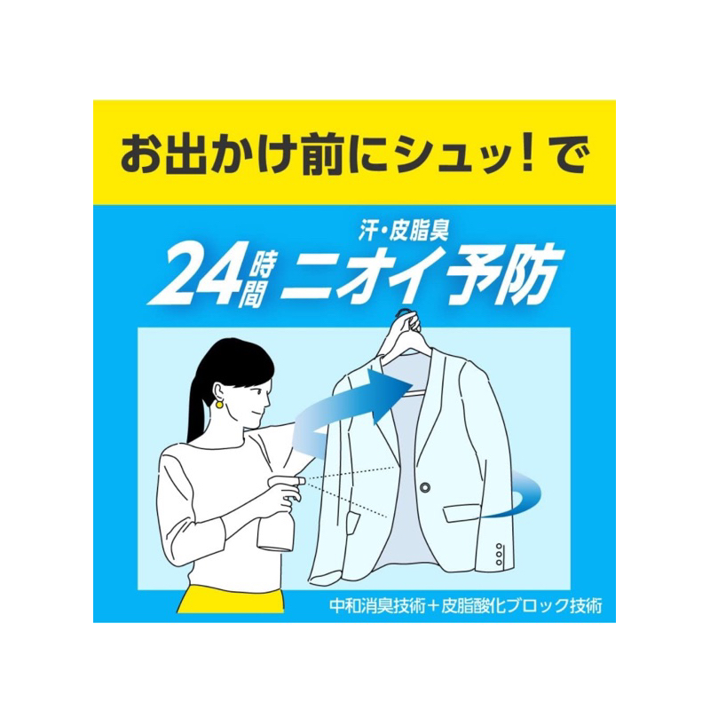 สเปรย์ฉีดเสื้อผ้า จากประเทศญี่ปุ่น มีคุณสมบัติฆ่าเชื้อโรคและกำจัดแบคทีเรียบนเสื้อผ้า ที่เป็นสาเหตุของกลิ่นอับชื้นบนเสื้อผ้าสามารถใช้ได้กับโซฟา หรือพรม หรือพื้นที่ต่างๆ เพื่อลดกลิ่นอับชื้น
