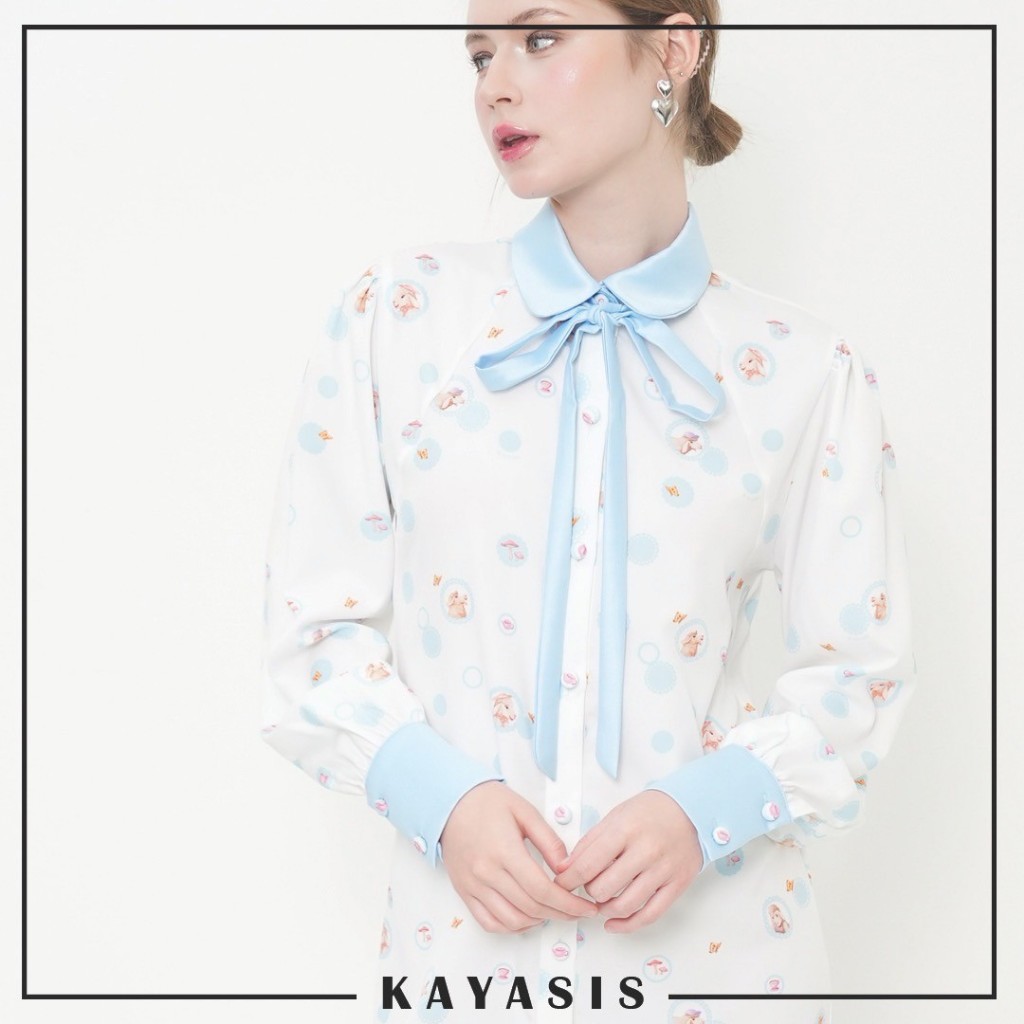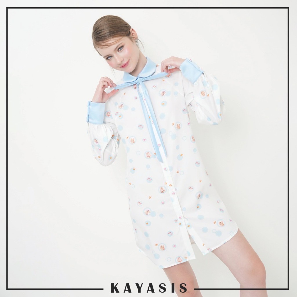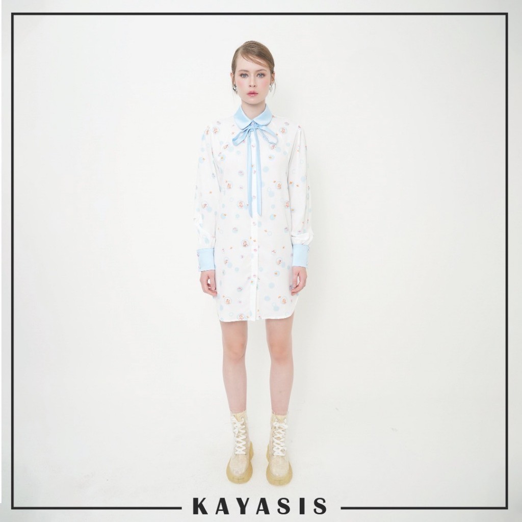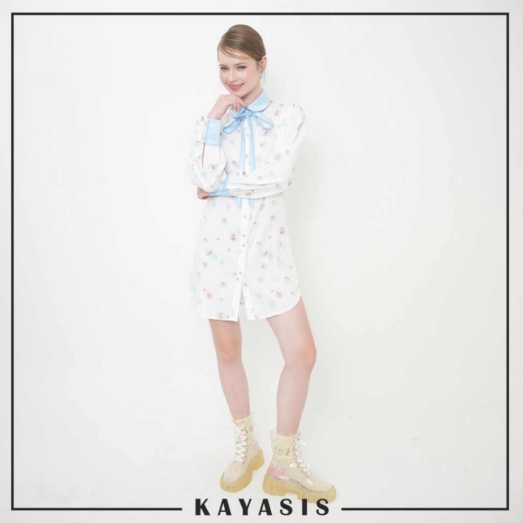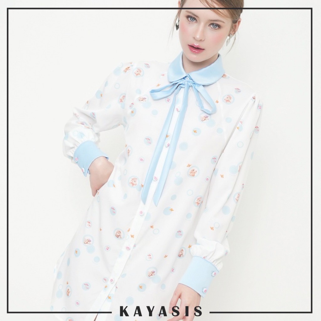 ยกความคิวท์มาทั้งโลก SHIRT DRESSES พิมพ์ลายคอลเลคชั่น LUCCA FONTANINI ตัวชุดทำจากผ้าไหมอิตาลี ใส่เย็น เบาสบาย ไม่ร้อน แต่งขอบแขน ปก โบว์ด้วยผ้าสีฟ้า โบว์สามารถถอดออกได้ กระดุมหน้าปั๊มผ้าตัว อย่างคิ้วท์อ่ะ