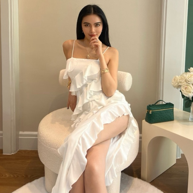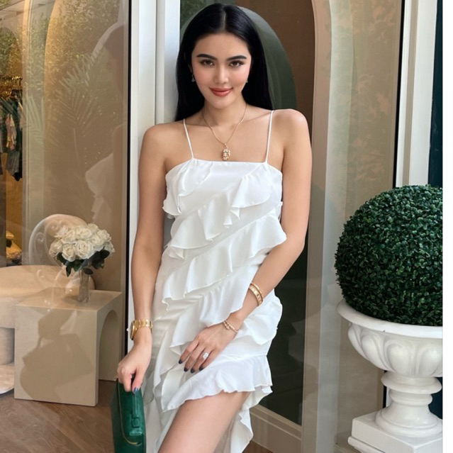 crop..shop มินิเดรสลายจุด งานสายเดี่ยว คุณหนู งานน่ารัก ละมุ…