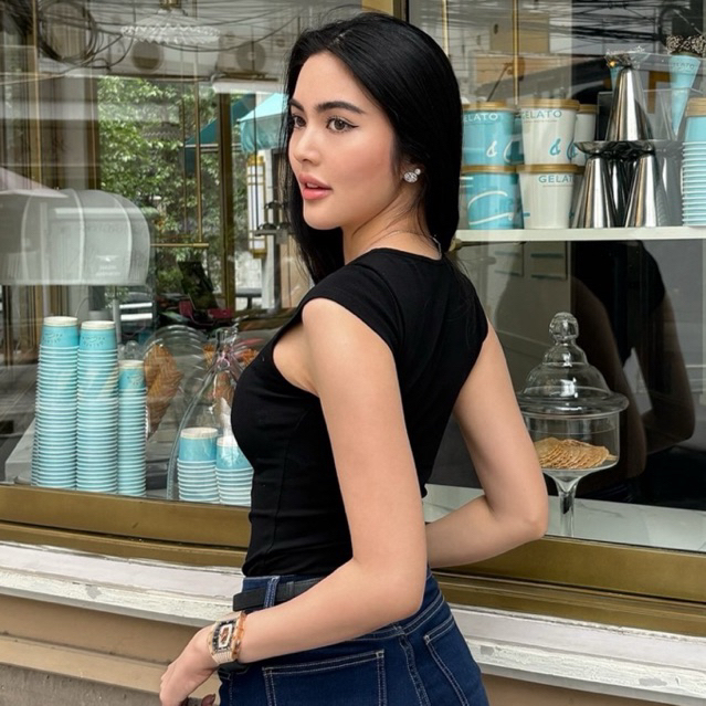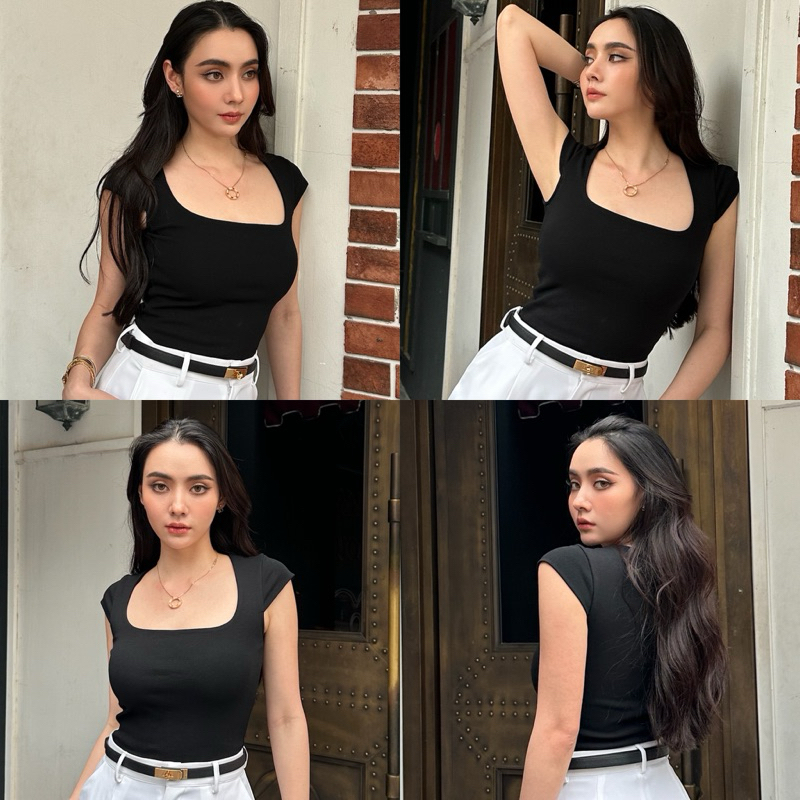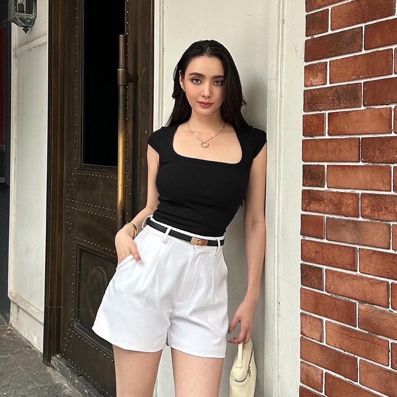 RICHYGIRL | Tyla Top เสื้อยืดแขนสั้น ผ้าหนานุ่มนิ่ม กระดุมสแ…