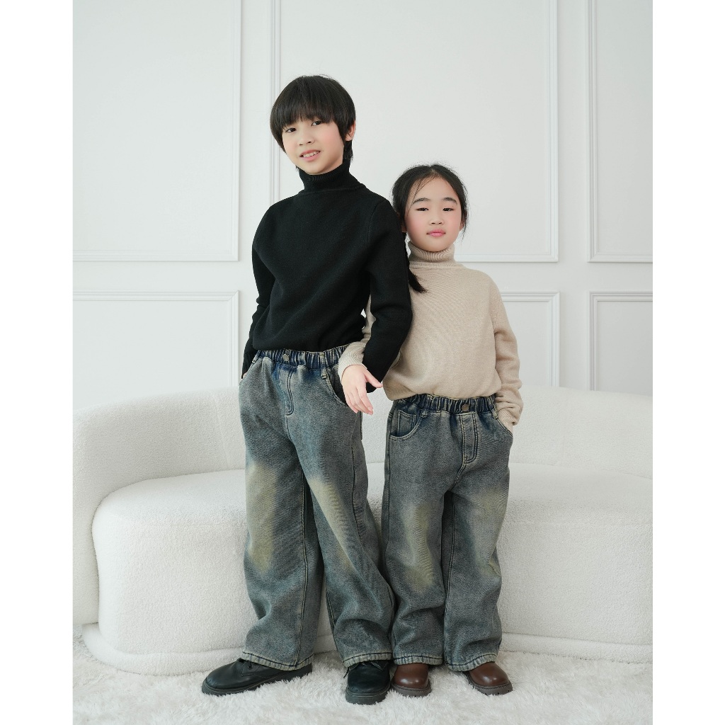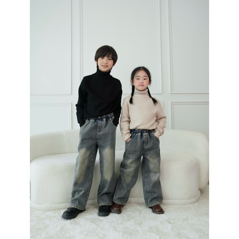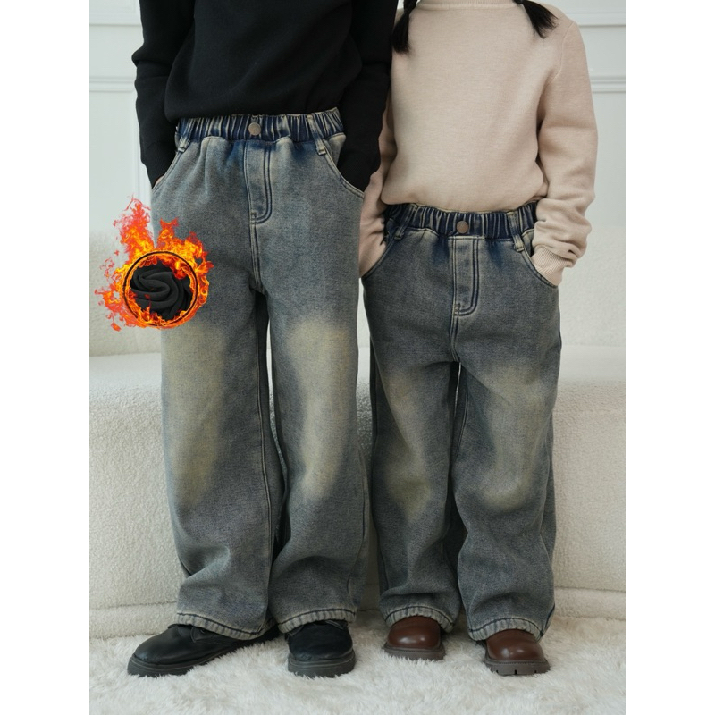 กางเกงยีนส์กันหนาว ทรงขากระบอกสำหรับเด็ก ใส่ได้ทั้งลูกสาวและลูกชาย รุ่นนี้ดีไซน์เป็นเอวสม็อค ทำให้สวมใส่ง่าย เป็นทรงที่ใส่สบายสุดๆ เนื้อผ้ายีนส์นุ่ม ด้านในบุขนหนานุ่ม กันหนาวได้เป็นอย่างดี มีกระเป๋าข้าง 2 ข้าง และกระเป๋าหลังสามารถใช้งานได้จริง สียีนส์ฟอกและเฟด แมทช์ลุคได้หลายลุคเลยค่ะ