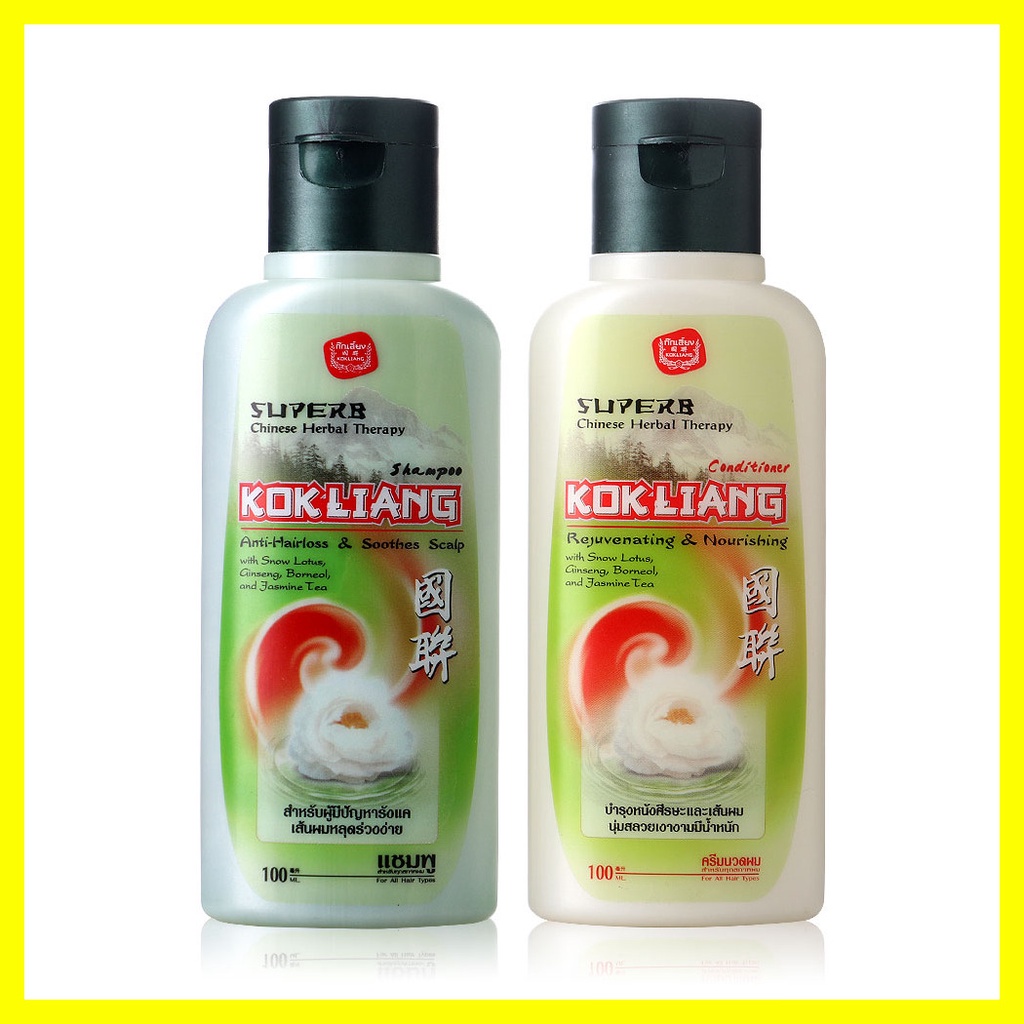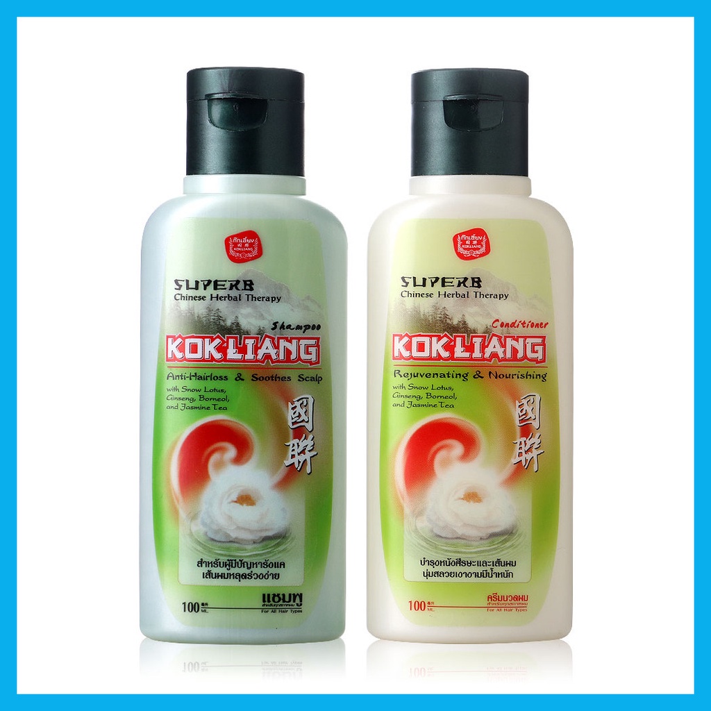Kokliang Set 2 Items Herbal Therapy Shampoo and Conditioner (100ml x 2pcs) ชุดผลิตภัณฑ์ดูแลเส้นผมและหนังศีรษะ สมุนไพรสูตรออริจินัล สำหรับผู้มีปัญหารังแค อาการคันศีรษะ เส้นผมหลุดร่วงง่าย ช่วยปรับสภาพเส้นผมที่เกิดใหม่ให้แข็งแรงขึ้น หนังศีรษะสุขภาพดี