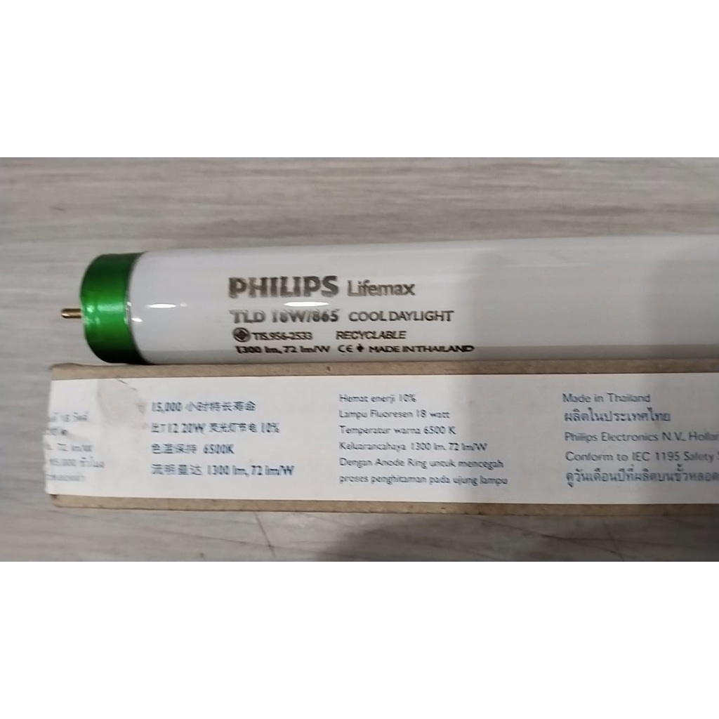 หลอดนีออนยี่ห้อฟิลิปส์ 18 วัตต์ ซุปเปอร์ขั้วเขียวT8 18W 865Philips