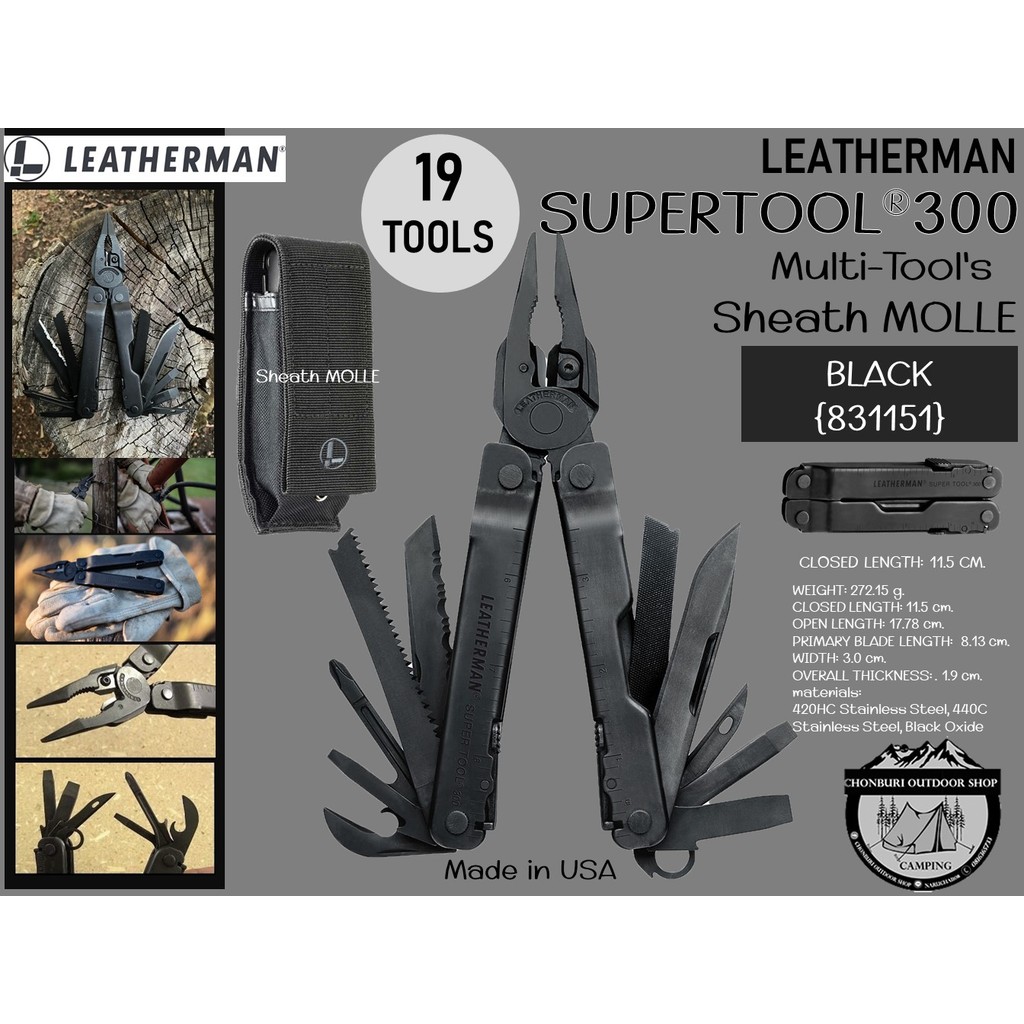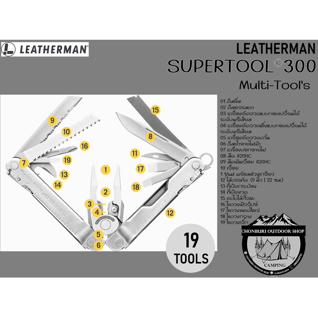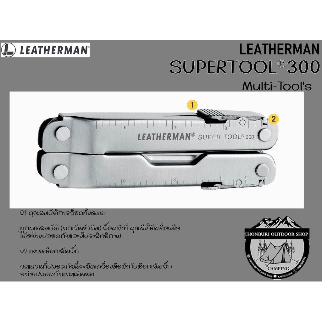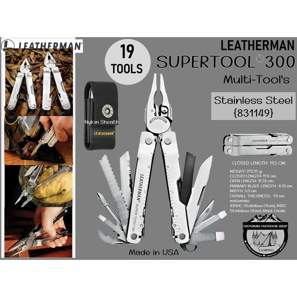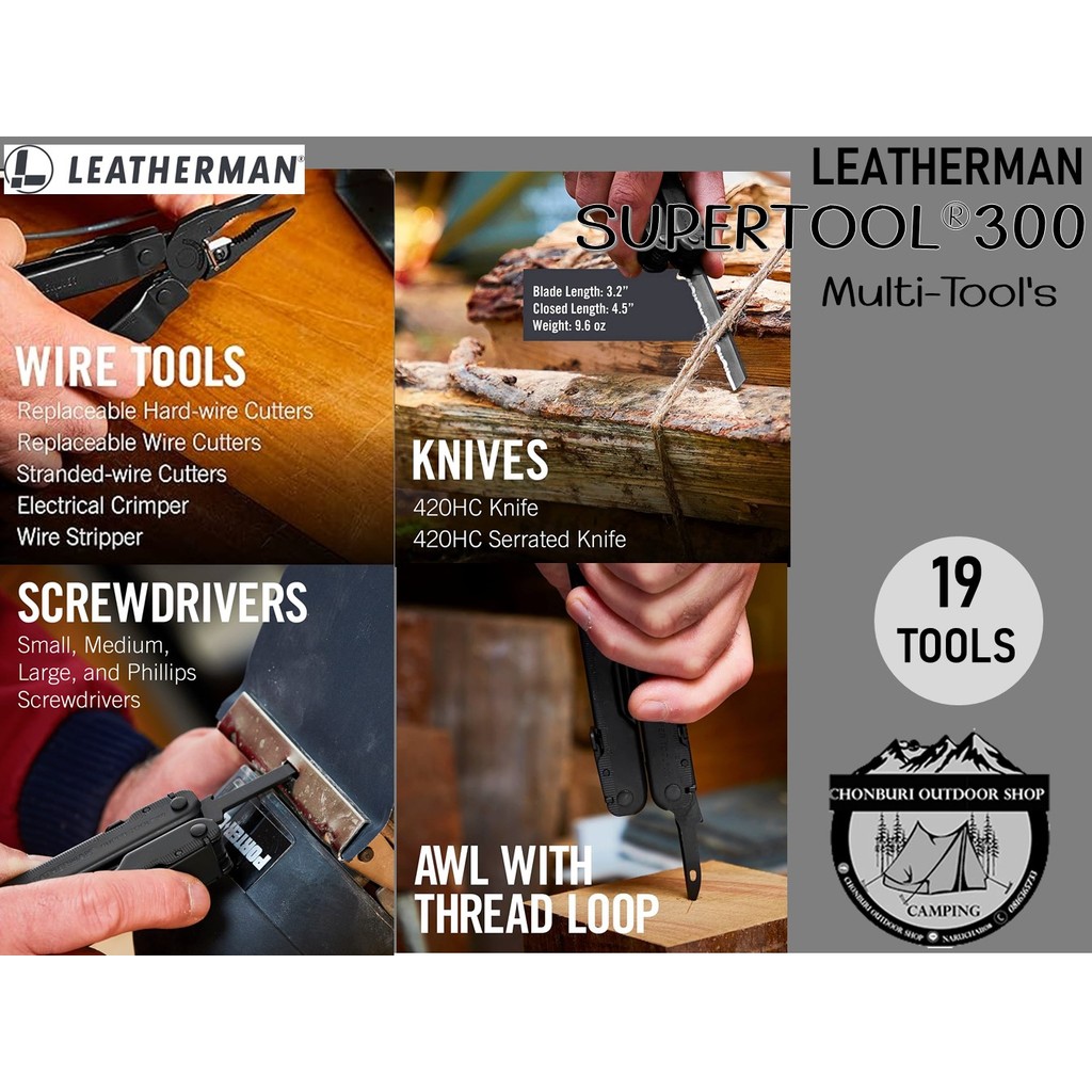 Leatherman Super Tool 300 เป็น Muti-tools ที่ได้รับรางวัล เหมาะสำหรับผู้ใช้งานตัวจริง มีคีมขนาดใหญ่และแข็งแรงที่สุด มีการออกแบบด้ามจับให้สามารถทำงานได้แม้ในที่แคบ เครื่องมือทั้ง 19 ชิ้นของ Super tool 300 พร้อมสำหรับรับมือกับงานยากของคุณ ไม่ว่าจะเป็นใบมีดเรียบ ใบมีดหยัก เลื่อย และไขควงหลากหลายรูปแบบที่ผลิตจาก 420HC Stainless Steel ไม้บรรทัดที่วัดความยาวได้ถึง 22 เซนติเมตร ไปจนถึงที่เปิดกระป๋อง ที่เปิดขวด หรือตะไบ และที่สำคัญคือใบมีดตัดลวดที่ผลิตจาก 154CM ตัดได้ทั้งลวดธรรมดาและลวดที่แข็งพิเศษ สามารถถอดเปลี่ยน หรือถอดออกมาลับคมได้ เครื่องมือชนิดนี้ผลิตในประเทศสหรัฐอเมริกา