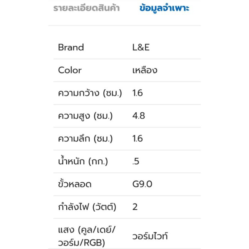 หลอด LED L&E 220VAC 2 วัตต์ G9 WARMWHITE