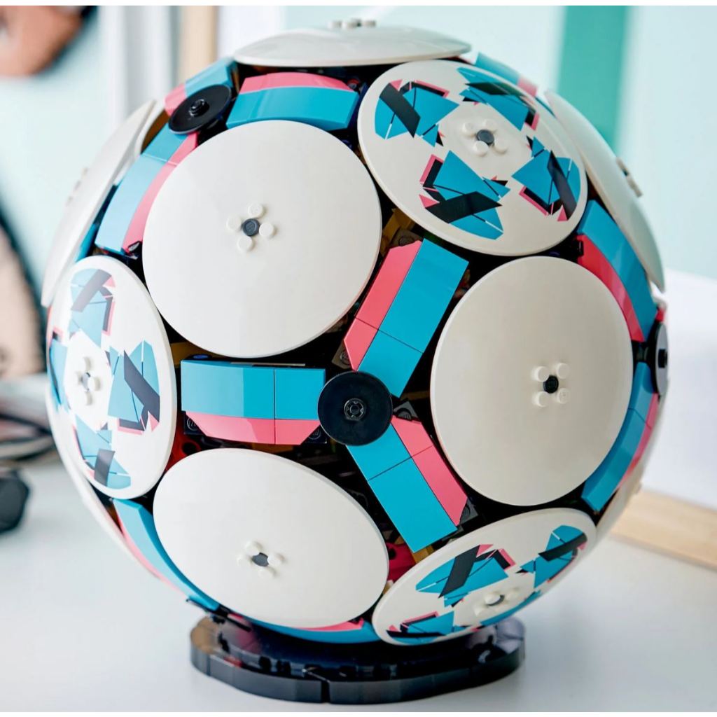 DIMENSIONS – The 1,498-piece LEGO® football measures over 22 cm (8.5 in.) high, 21 cm (8.5 in.) wide and 21 cm (8.5 in.) deep