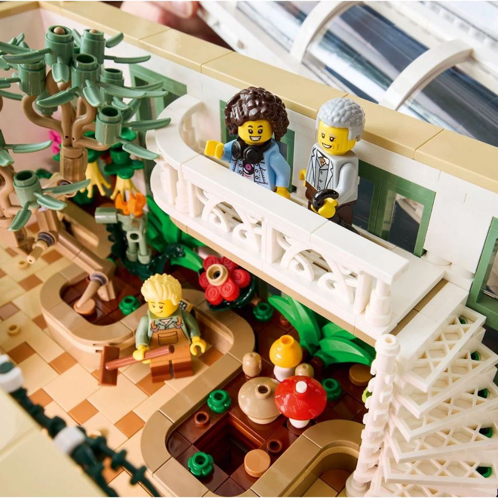 Build your connection to the natural world and create calming living room decor with this LEGO® Ideas botanical garden set (21353). A delightful nature gift for men, women and any gardeners or flower-lovers, the buildable Victorian-style glasshouse has 3 atriums with removable roofs and walls for easy access to the detailed interior. The main atrium features a spiral staircase to the observation deck, while the 2 smaller atriums house an arid garden and a café. Outside the building are gardens featuring colourful peonies. In total, the botanical garden showcases over 35 plant species.
