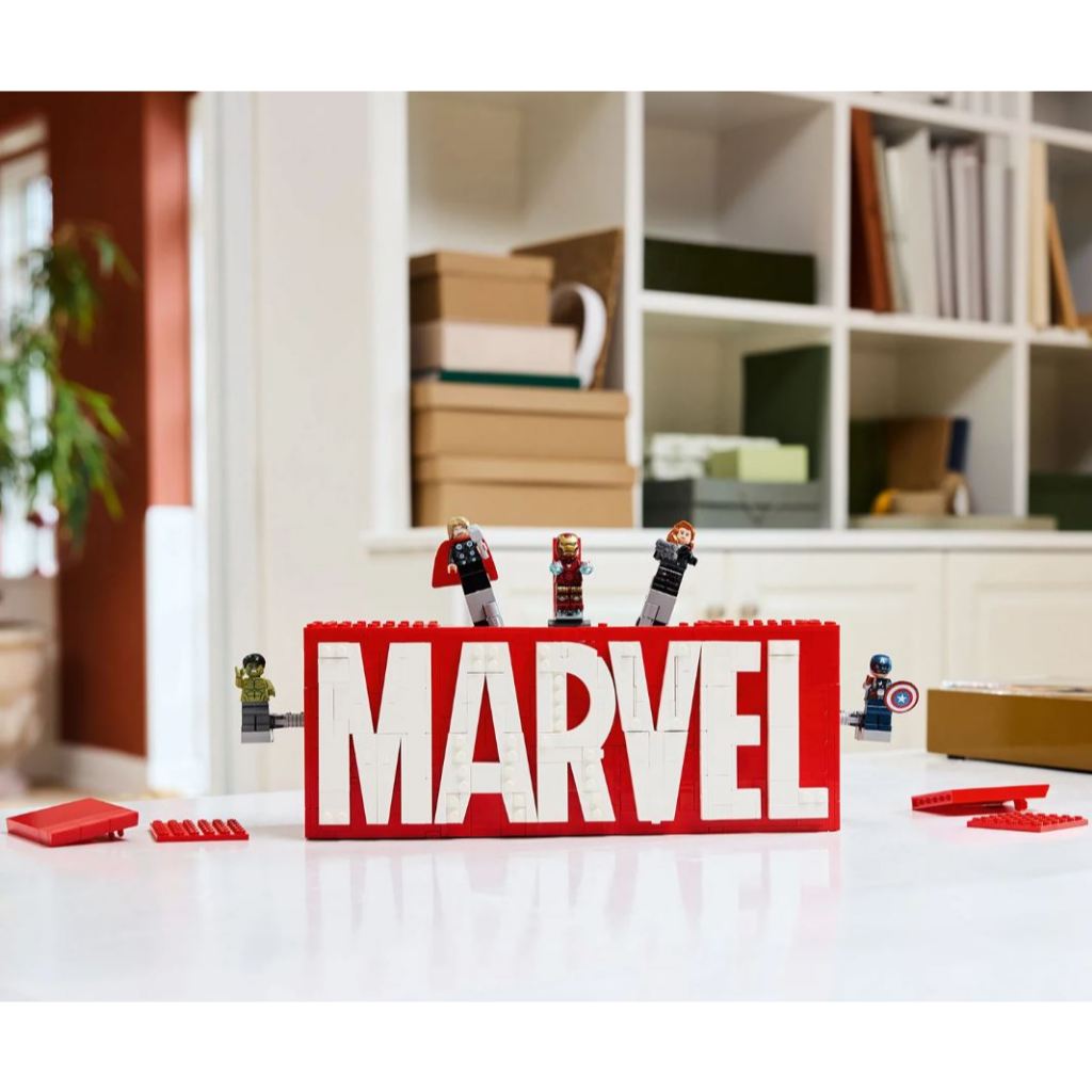 931-piece MARVEL logo set – In its closed position, the Marvel model measures over 4 in. (11 cm) high, 11 in. (28 cm) wide and 2.5 in. (7 cm) deep