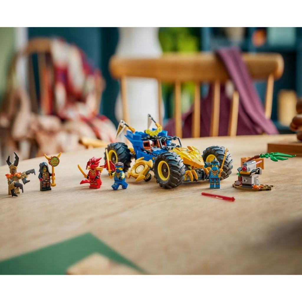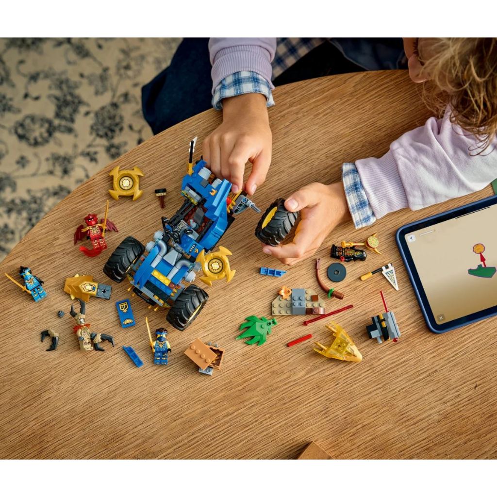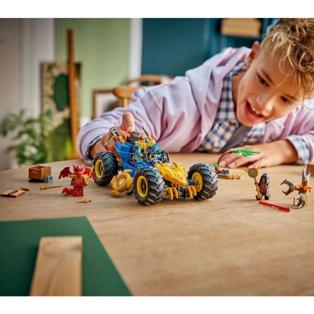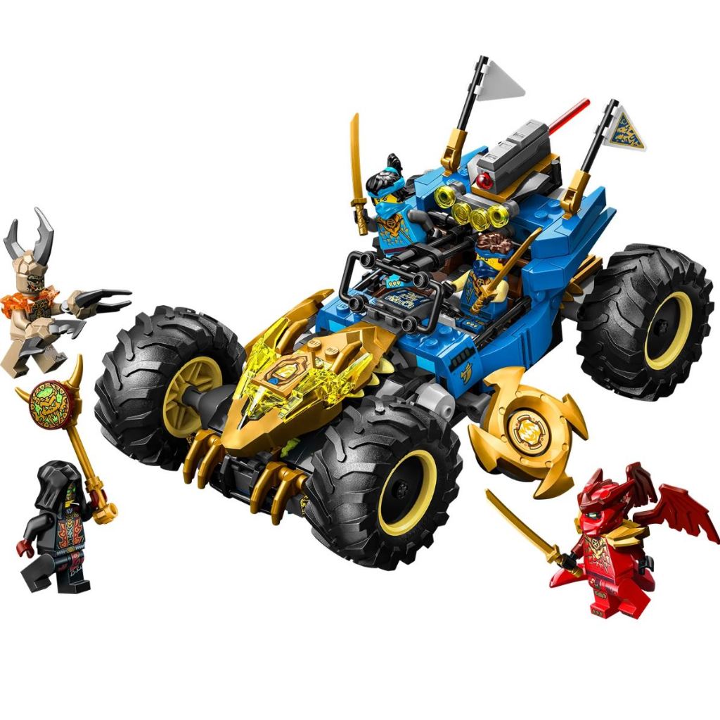 Boys and girls aged 8 and over can enjoy hours of fast action with the LEGO® NINJAGO® Jay’s Transforming Car (71856) toy building set. This 2-in-1 ninja car racing toy can be played with and displayed in 2 versions: regular mode or flip the front to put it into dragon mode, revealing golden claws, a dragon head and rotating shurikens.