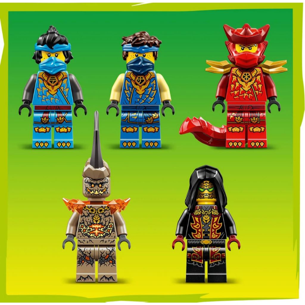 This great-value kids’ adventure toy features a spring-loaded shooter with 2 darts, which can be detached and placed on a plant-covered side build for kids to play out battles. The set also includes 5 NINJAGO minifigures: Jay, Nya and dragon form Kai, plus the villainous Earth Monster and Loyalist Leader to stage good vs. evil battles.