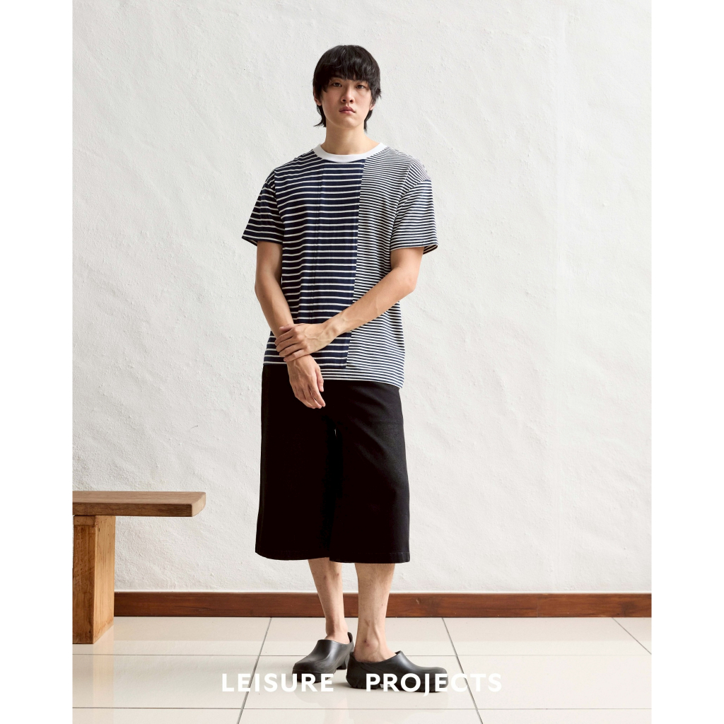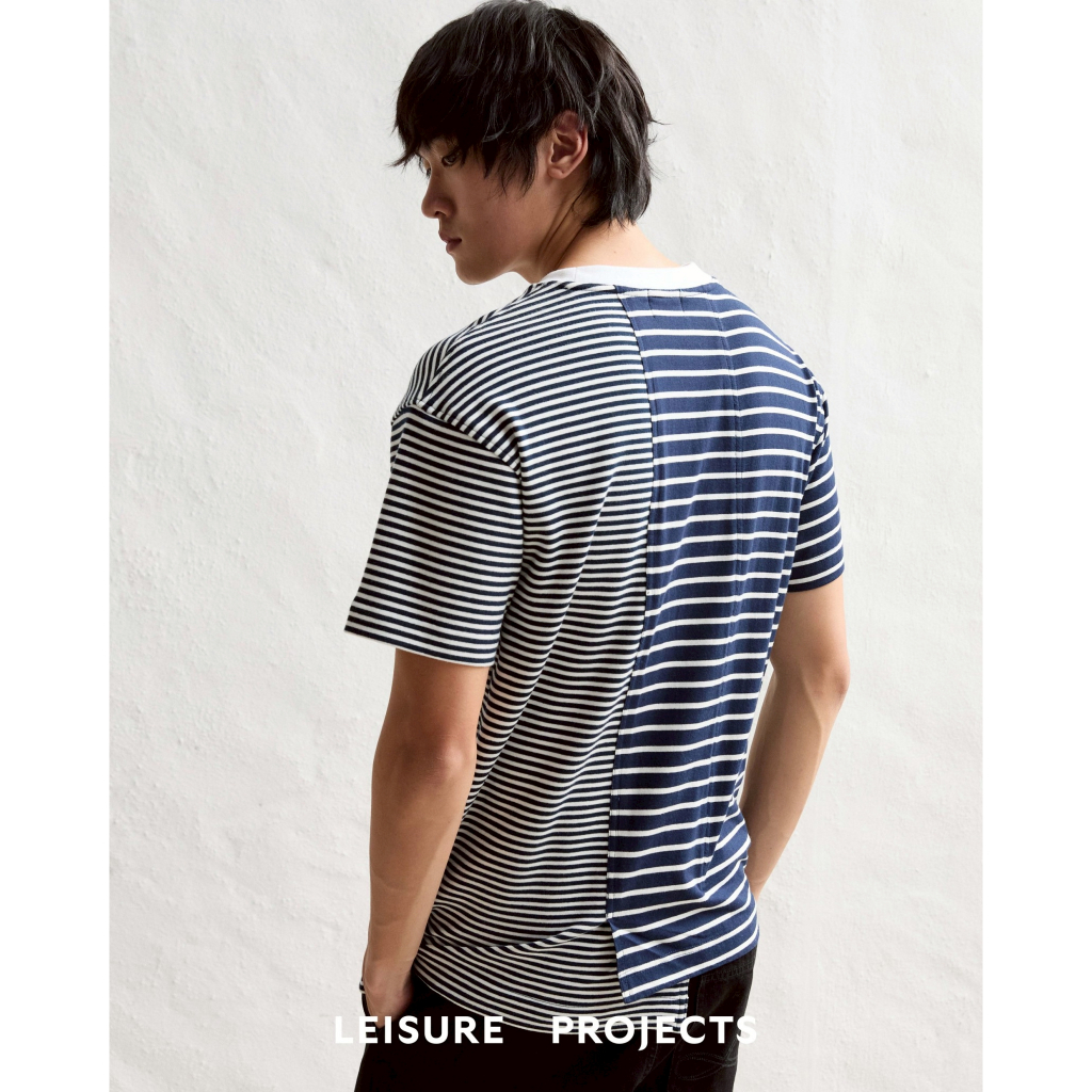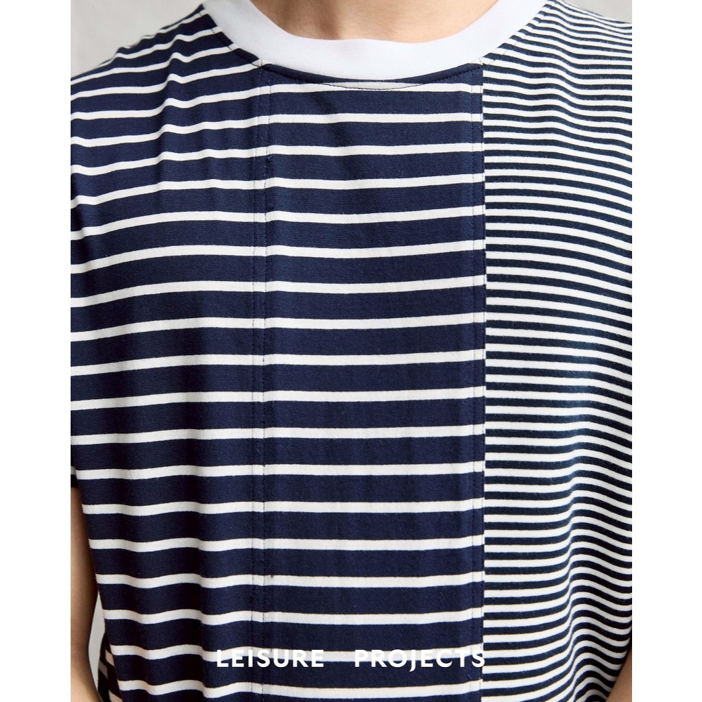 เสื้อยืดผ้าคอลตอนเเขนสั้น กีเทลตัดต่อผ้าลายทาง