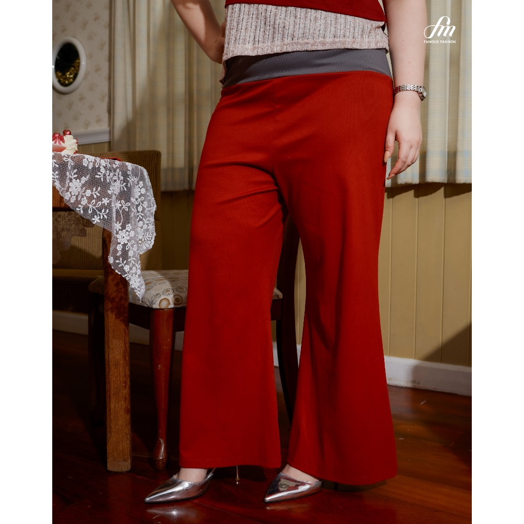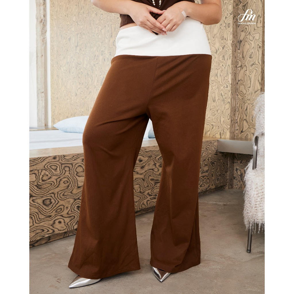 กางเกงลายทาง กางเกงขายาว ทรงหลวม สาวอวบใส่ได้ เอวยืดเยอะ #11…
