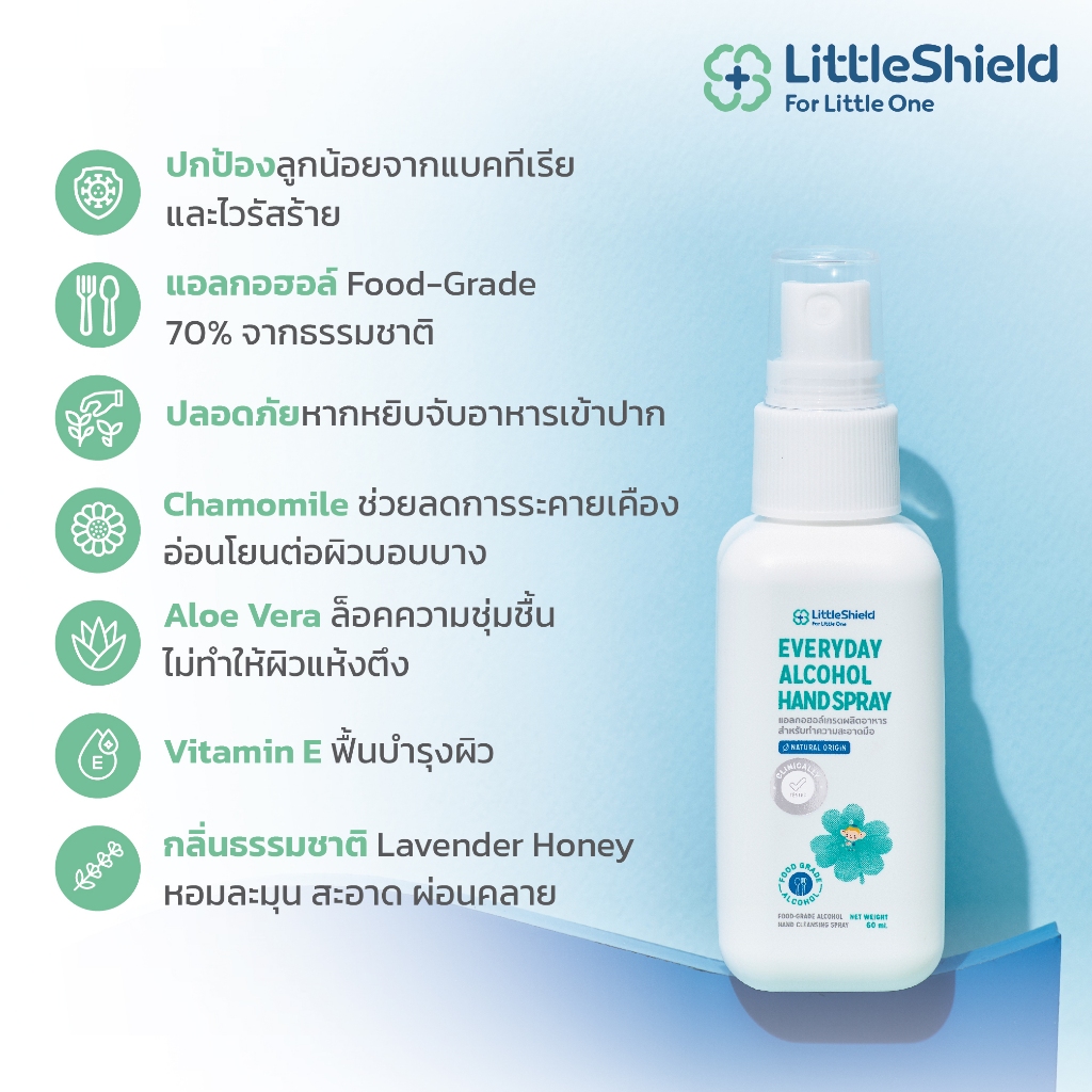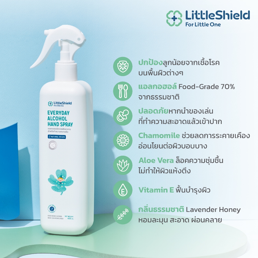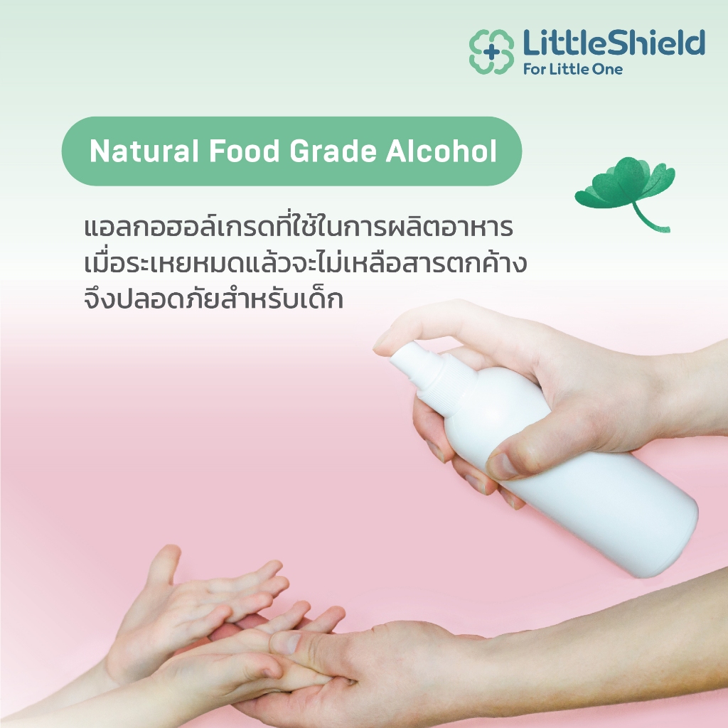 ใช้ฉีดพ่นพื้นผิว ของเล่นหรือของใช้เด็กได้ เพราะเป็นแอลกอฮอล์ Food Grade 70% ที่ปลอดภัย สามารถใช้ได้บ่อยตามต้องการ