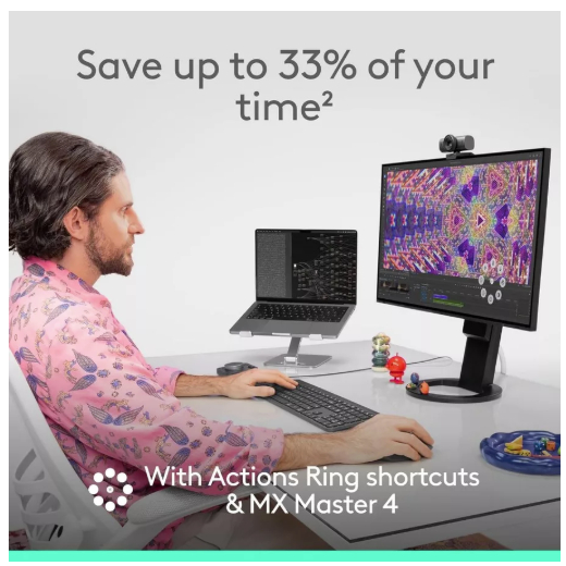 MX Master 4 ที่จะมอบการควบคุมที่ให้ความรู้สึกดื่มด่ำและความแม่นยำที่คุณสัมผัสได้ด้วยระบบตอบสนองแบบสัมผัสที่ปรับแต่งได้สำหรับการดำเนินการเฉพาะ ประหยัดเวลาของคุณได้สูงสุดถึง 33% ด้วยปุ่มลัด Actions Ring และ MX Master 4 โดยการเข้าถึงเครื่องมือและตัวกรองที่เคอร์เซอร์ของคุณ คุณลักษณะเพิ่มเติม: การเชื่อมต่อที่ดีขึ้น 2 เท่า เลื่อนได้เร็วเป็นพิเศษด้วยล้อเลื่อน MagSpeed, 8k DPI ที่ติดตามได้บนทุกพื้นผิว ซึ่งรวมถึงกระจก และ Logi Options+ สำหรับการปรับแต่ง