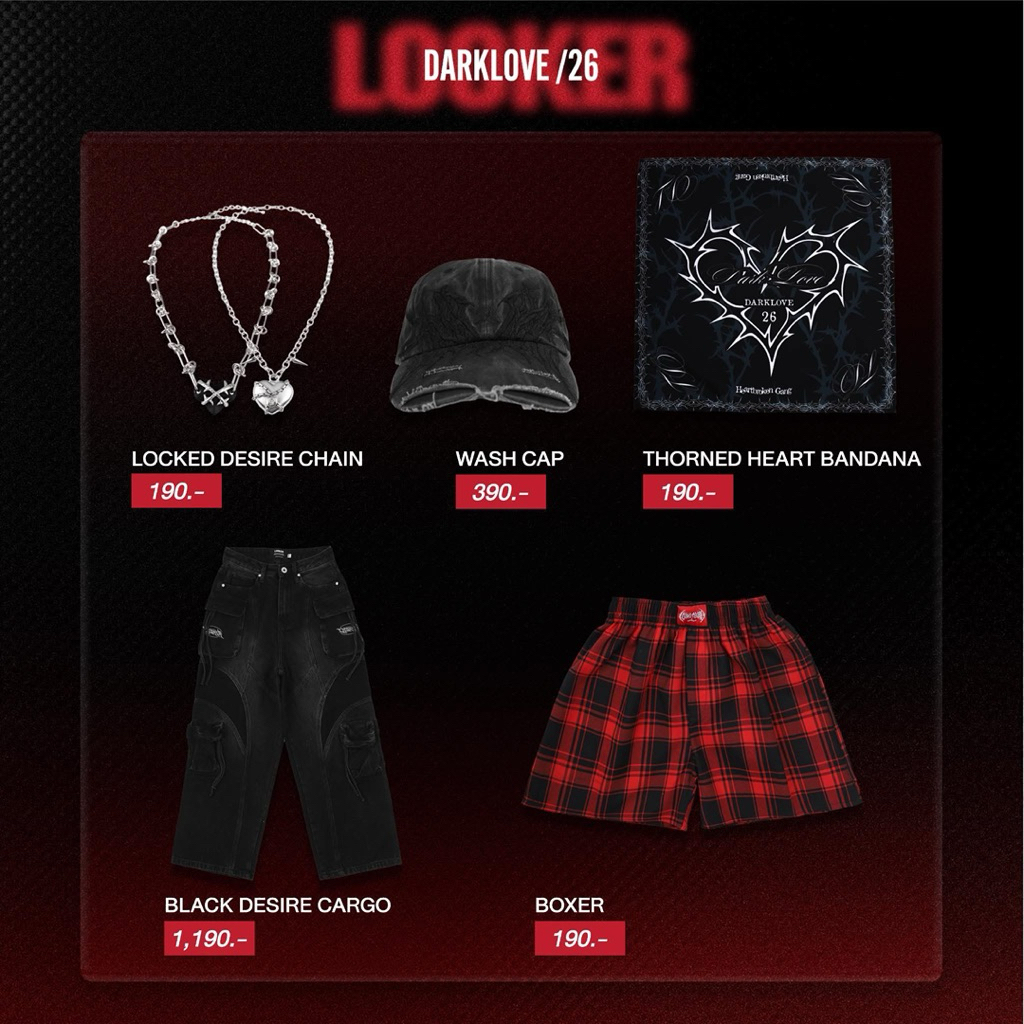 Collectionนี้ มาในโทนสีดำ พร้อมลายกราฟฟิตตี้ ที่ถูกออกแบบมาให้โดนใจชาว Heartbroken Gang แบบตรงจุด ทั้งเท่ ทั้งแทงใจ และมีความหมายในแบบของ DARKLOVE