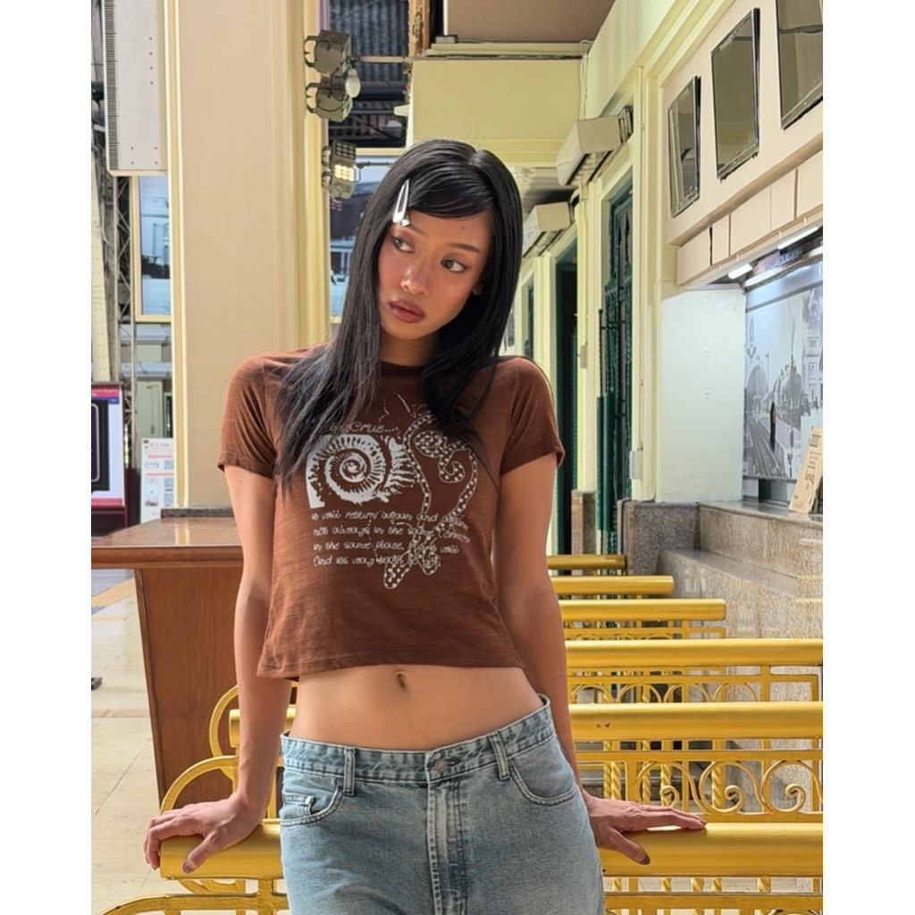 RICHYGIRL | Tyla Top เสื้อยืดแขนสั้น ผ้าหนานุ่มนิ่ม กระดุมสแ…