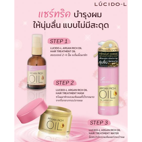 • ผสานคุณค่าการบำรุงสู่เส้นผมด้วยอาร์แกน ออยล์ ที่ผ่านกระบวนการสกัดด้วยระบบแรงดันสูง ทำให้กระจายตัวบนผมได้ดี ทำให้ผมชุ่มชื้น จัดทรงง่าย ผมสวย เงางาม