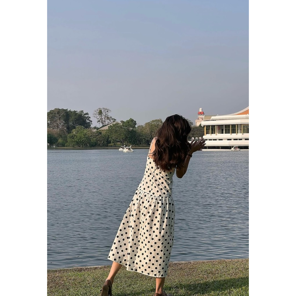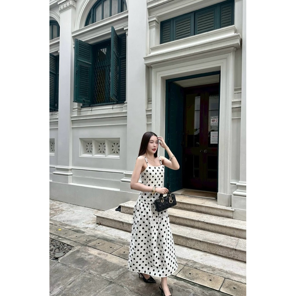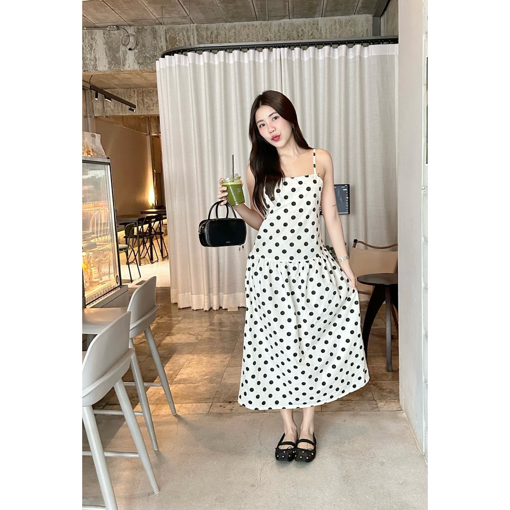 เดรสลายจุดสายเดี่ยวทรงกระโปรงจีบ ดีไซน์เรียบหรูสไตล์มินิมอล ช่วยพรางสัดส่วนและใส่ได้หลายโอกาส เนื้อผ้านุ่มสบาย ไม่บาง ใส่แล้วพลิ้วสวย ให้ลุคหวานปนเซ็กซี่เล็ก ๆ แบบมีสไตล์