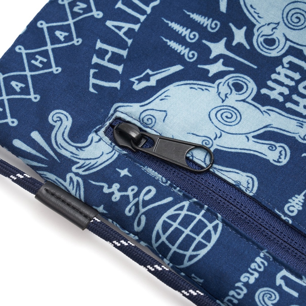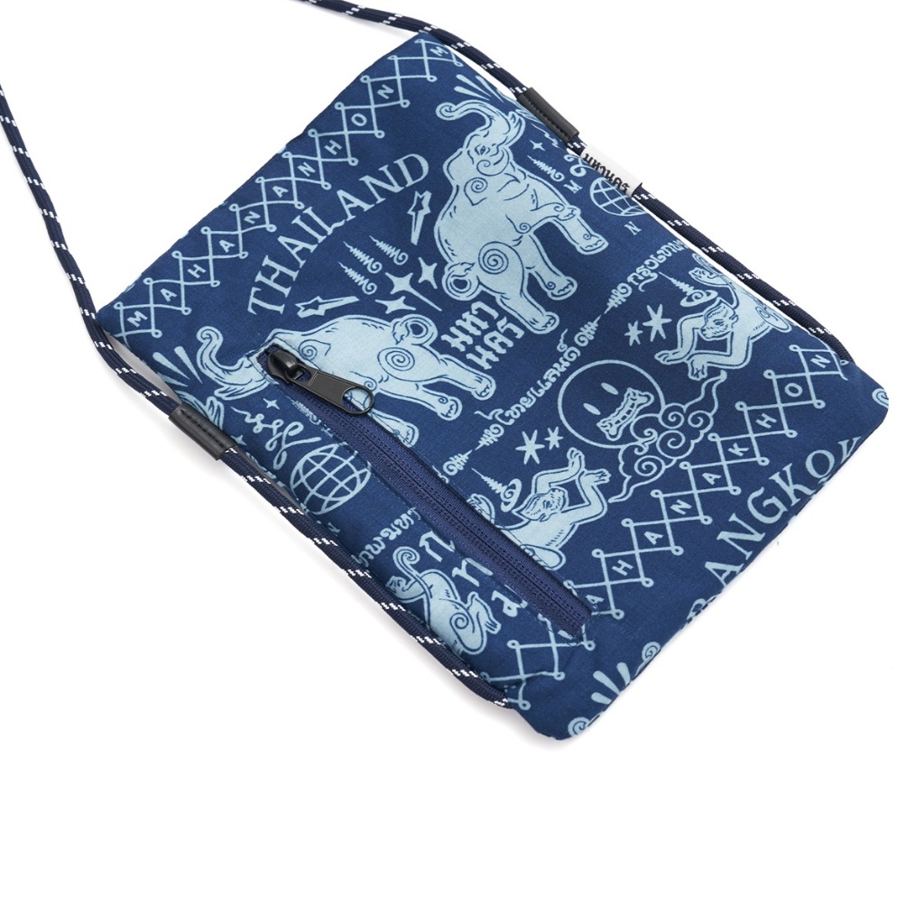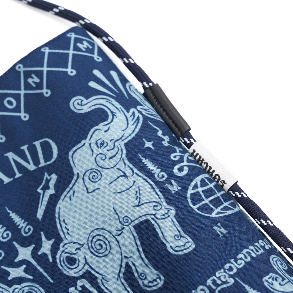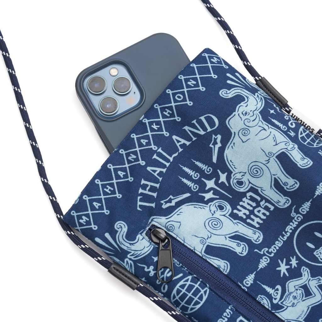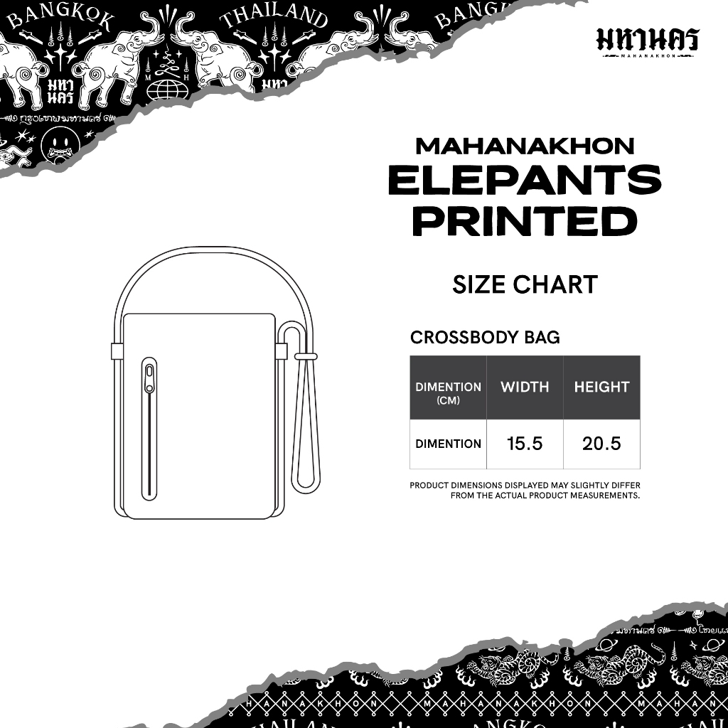 MAHANAKHON ELEPHANTS PRINTED - CHANG CROSSBODY BAG กระเป๋าสะพายข้างลายช้าง สีกรมท่า ขนาดกะทัดรัดแต่จุของได้อย่างเพียงพอ สะดวก พกง่าย มีสายคล้องปรับขนาดได้ ผสานดีไซน์ศิลปะการสักลายของไทยออกมาได้อย่างร่วมสมัย ไม่ว่าจะเป็น อักขระยันต์ ลายยันต์ช้างสาร,เสือเผ่น, และลิงลม ถูกนำเสนอในรูปแบบ Thai Street Culture ที่เปลี่ยนความดุดันสู่ความเท่ มีสไตล์ พร้อมเป็นพร็อปที่เพิ่มลูกเล่นให้ลุคของคุณดูไม่ธรรมดา