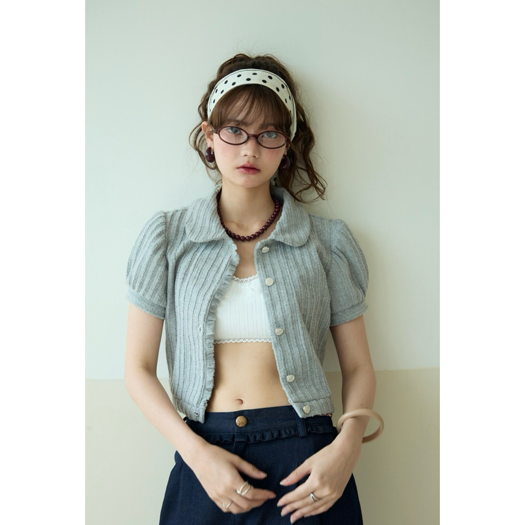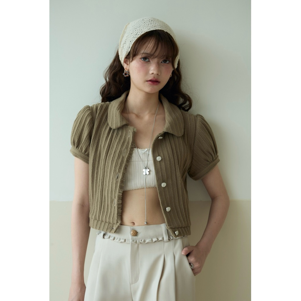 Dolla Crop เสื้อครอปผู้หญิงแขนฟักทอง แต่งระบาย