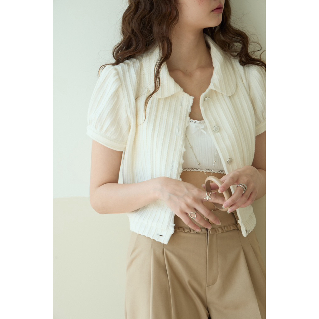 เสื้อดีไซน์ คอบัวแขนสั้น ให้ลุคหวานละมุน ดูสุภาพและน่ารักในเวลาเดียวกัน ตัวปกคอช่วยเพิ่มความเรียบร้อยให้กับลุค ใส่แล้วดูสวยคลาสสิกและดูแพง