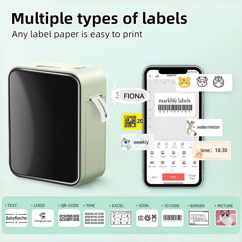 Marklife Thermal Label Printer P15 Bluetooth Label Sticker Printer Label Maker Mini Portable Printer