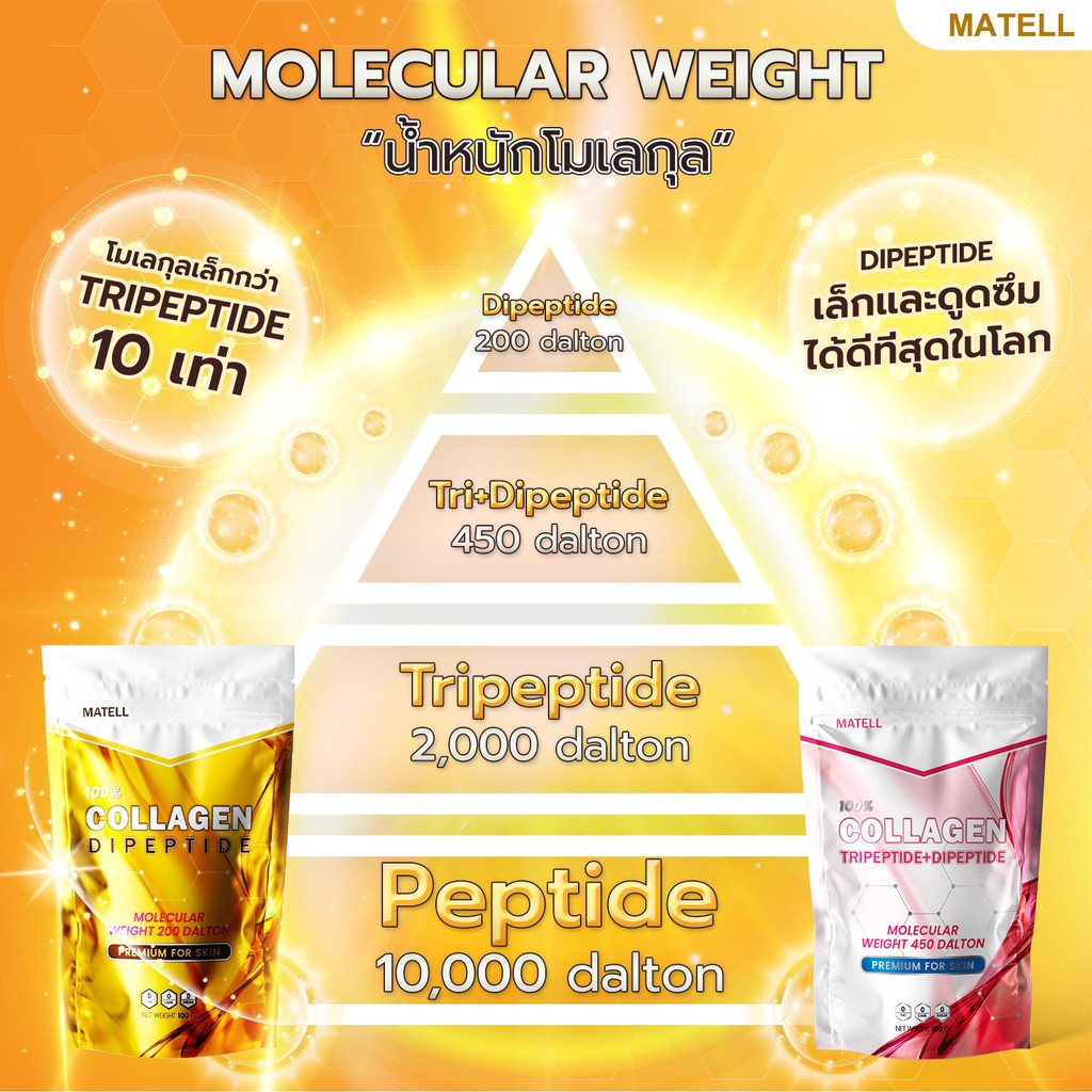 - ดูดซึมได้ดีกว่า คอลลาเจน Tripeptide ทั่วไป ถึง 10 เท่า