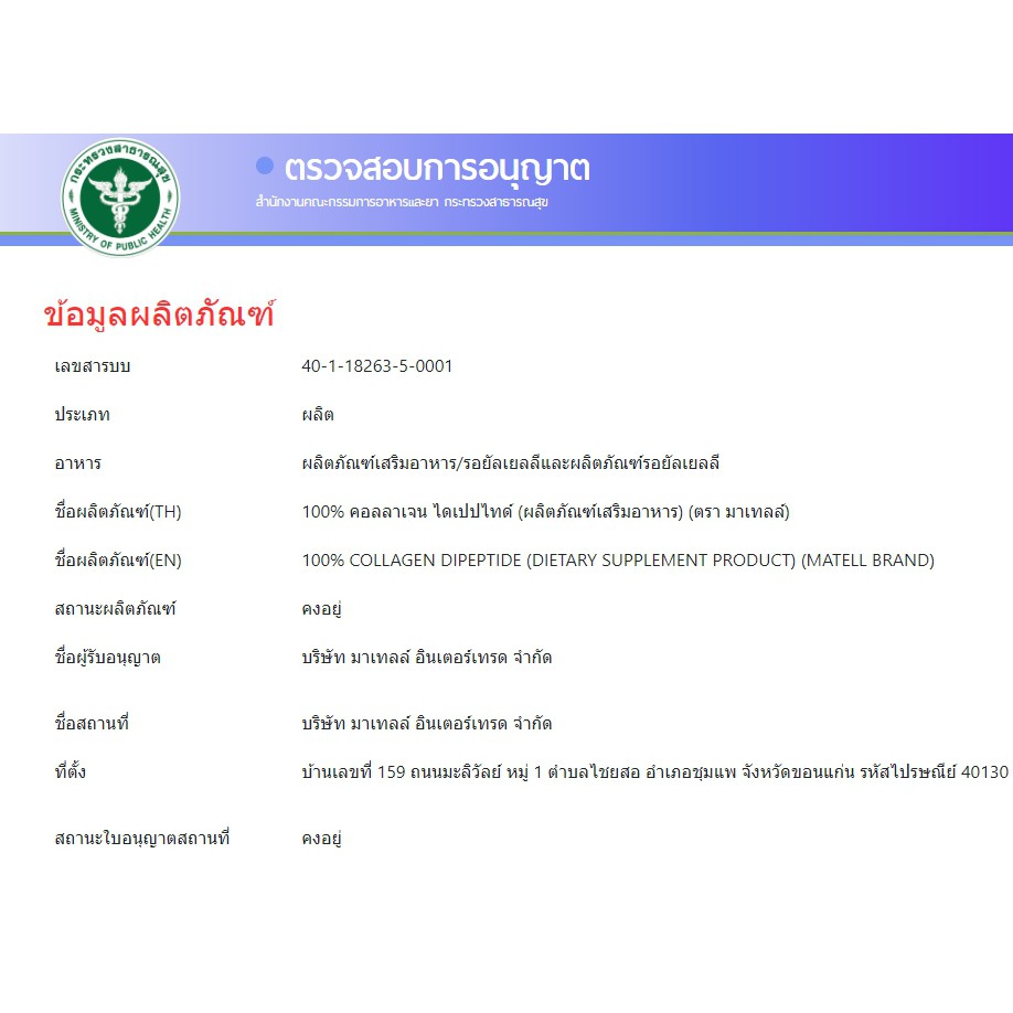 - Collagen Dipeptide 100% ไม่มีส่วนผสมอื่น