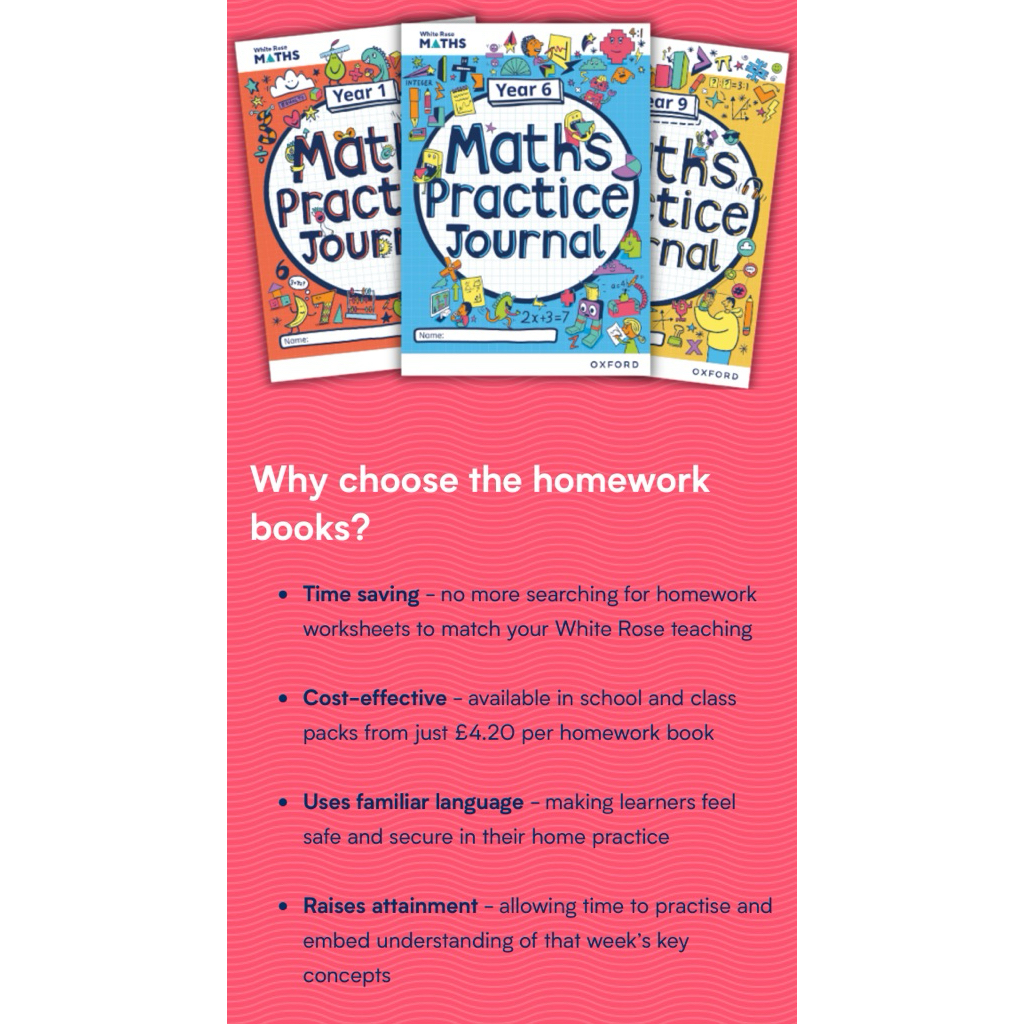Year 1-9 Maths Homework Book, developed by White Rose Maths and Oxford University Press. Perfect for parents, this book provides easy-to-follow weekly homework tasks that align directly with the White Rose Maths classroom lessons. Key features include:
