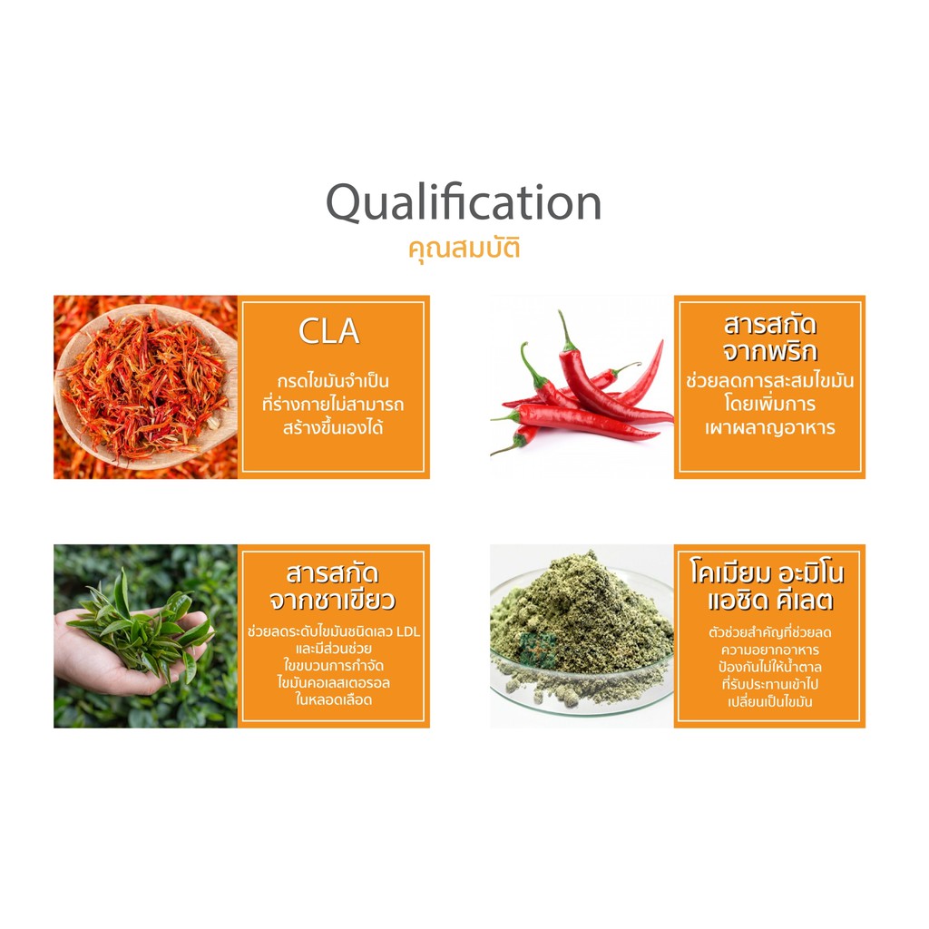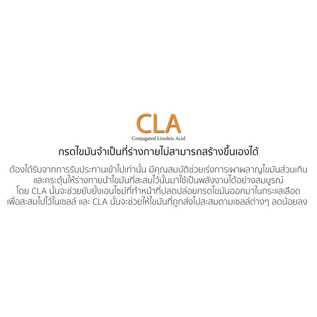 CLA : กรดไขมันจำเป็นที่ร่างกายสกัดเองไม่ได้ ช่วยกระตุ้นการเผาผลาญไขมันส่วนเกิน กระตุ้นให้ร่างกายนำไขมันมาใช้