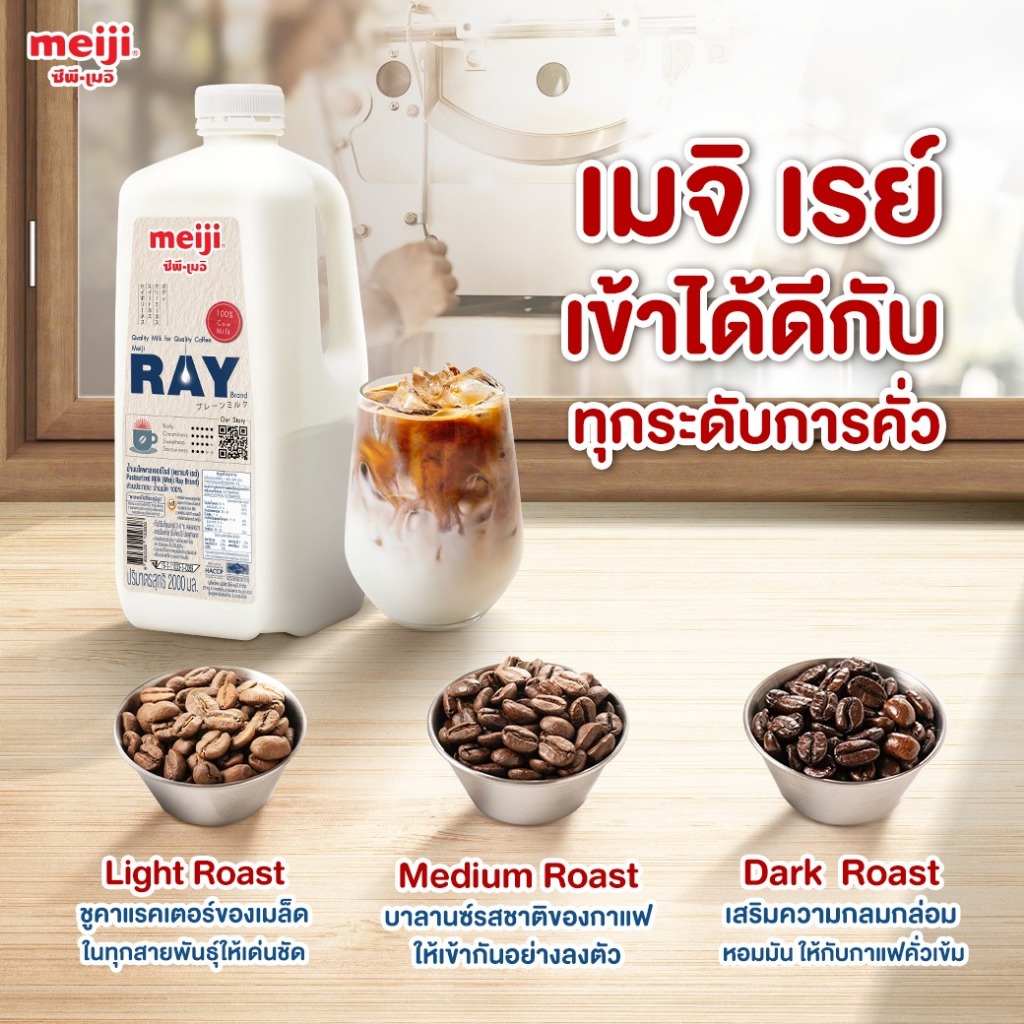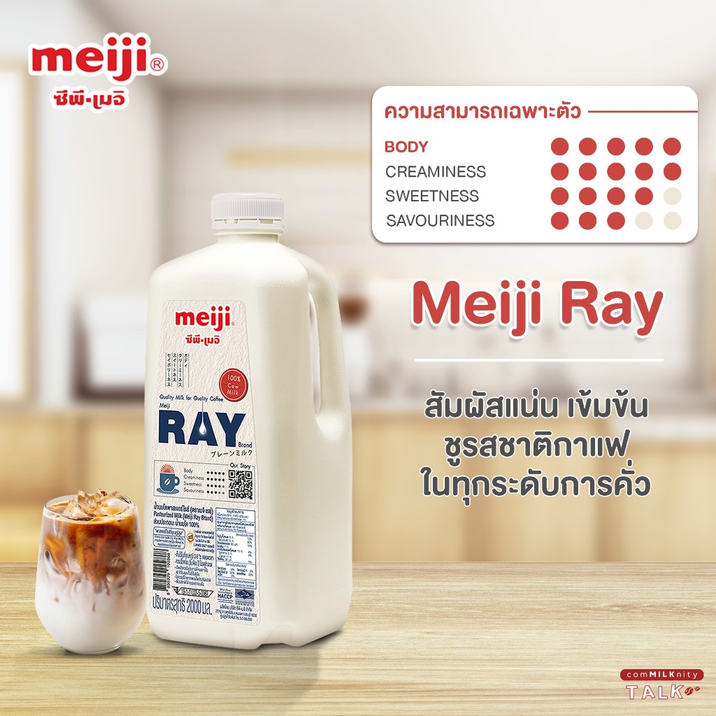 เมจิ เรย์ นมคุณภาพที่ช่วยเสริมรสชาติทุกเมนูนม นมโคแท้ 100% ผลิตจากน้ำนมโคแท้คุณภาพเยี่ยม เนื้อนมเข้มข้น หอม หวาน มัน ไม่กลบรสชาติของวัตถุดิบหลักเปิดรสชาติขั้นสุดของวัตถุดิบหลัก ทั้งกาแฟทุกสายพันธุ์ มัทฉะเกรดพิธี หรือช็อคโกแลตสเปเชียลตี้