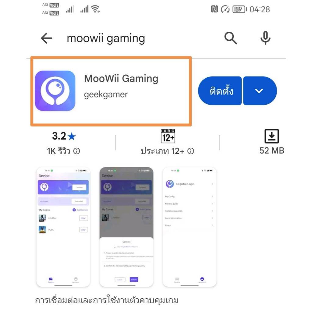 โปรแกรม Moowii Gaming สามารถดาวน์พิมพ์ค้นหาได้ ใน play store ทั้งใน Android และ ios