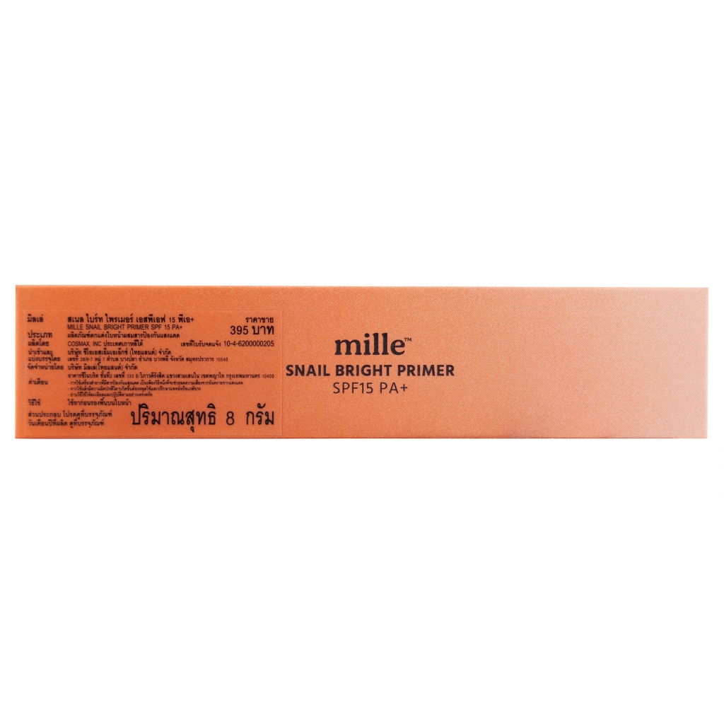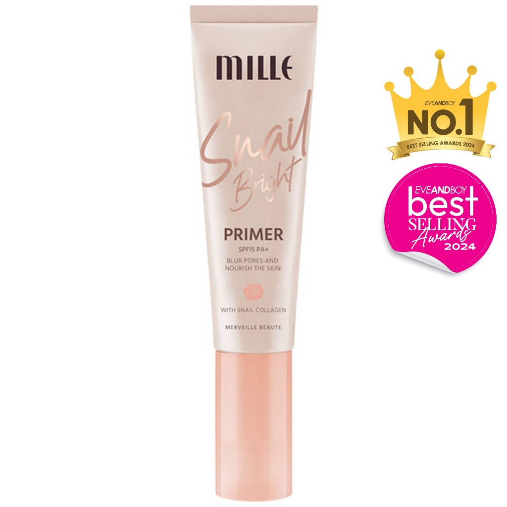 ผลิตภัณฑ์ไพรเมอร์ช่วยอำพรางผิวให้เรียบเนียน MILLE Snail Bright Primer SPF15 PA+ พร้อมมอบความชุ่มชื้นให้ผิวหน้าสวยผ่องดูสุขภาพดีตลอดเวลา ไม่หมองคล้ำระหว่างวัน ด้วยสารสกัดจากเมือกหอยทากเพิ่มความยืดหยุ่นกระชับให้แก่ผิว