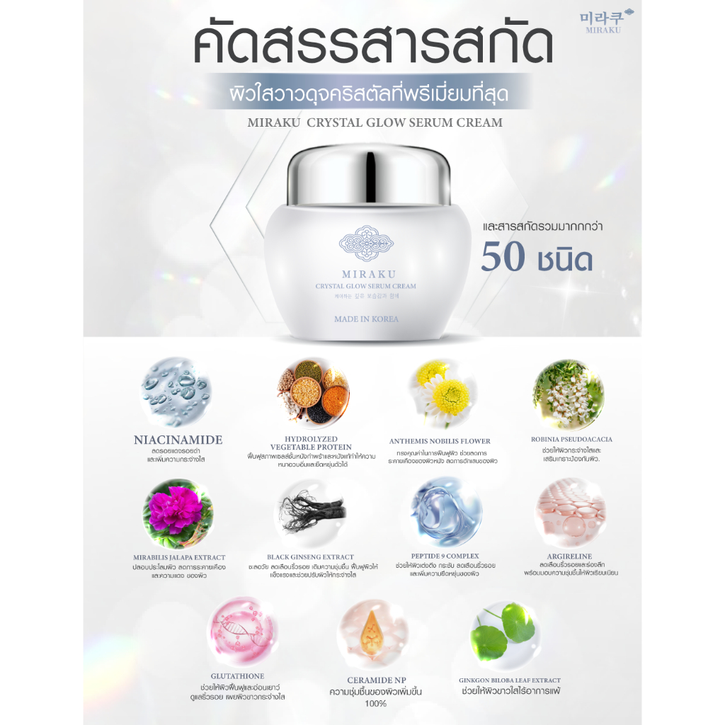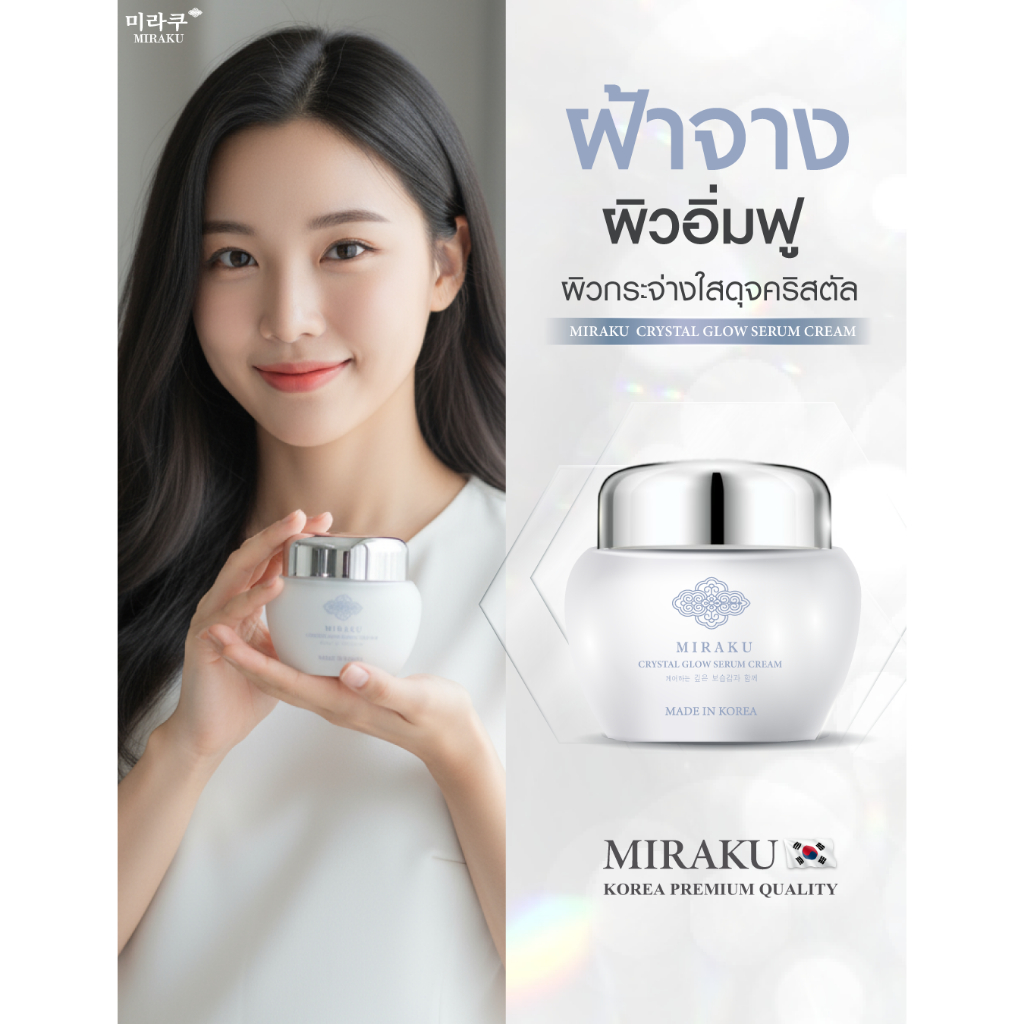 “ผิวโกลว์ใสเหมือนคริสตัล เริ่มได้ตั้งแต่วันนี้ — Miraku Crystal Glow Serum Cream, ความลับความงามจากเกาหลีที่ผู้หญิงทั่วเอเชียหลงรัก”