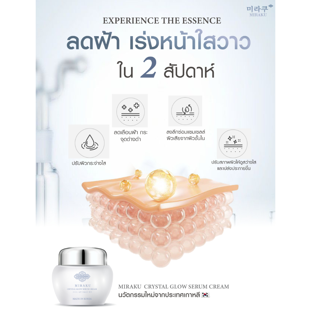“ผิวหมองคล้ำจางลงตั้งแต่สัปดาห์แรกที่ใช้ — Miraku ครีมที่รวมเทคโนโลยี Crystal Radiance จากเกาหลี เพื่อผิวใสสว่างทุกองศา”