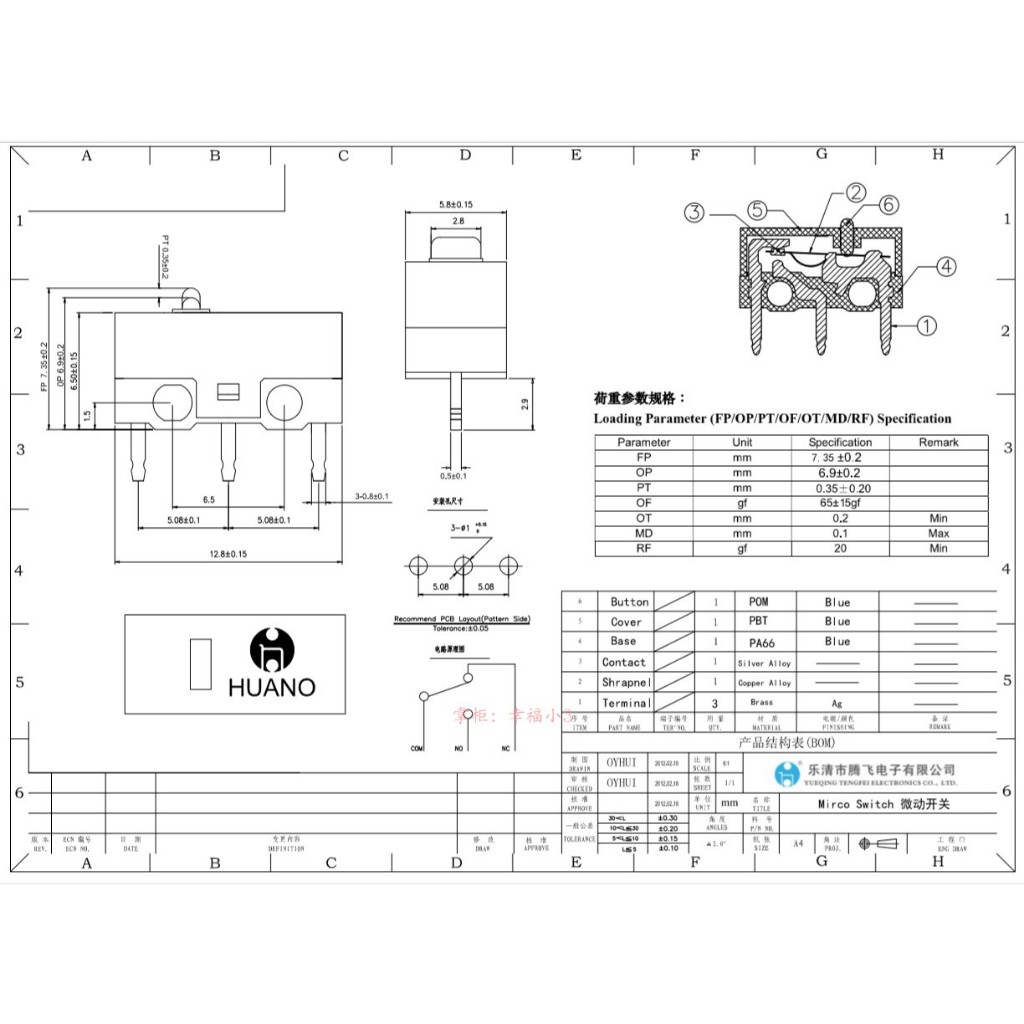 Huano สวิทซ์ที่ออกแบบและถูกติดตั้งในเม้าส์สำหรับเล่นเกมส์หลากหลายรุ่น ผลิตจากโรงงานในประเทศจีน