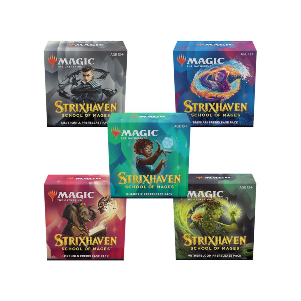 - 1 Strixhaven: School of Mages College Booster (Rare/Mythic slot is from the Prerelease Pack's college)