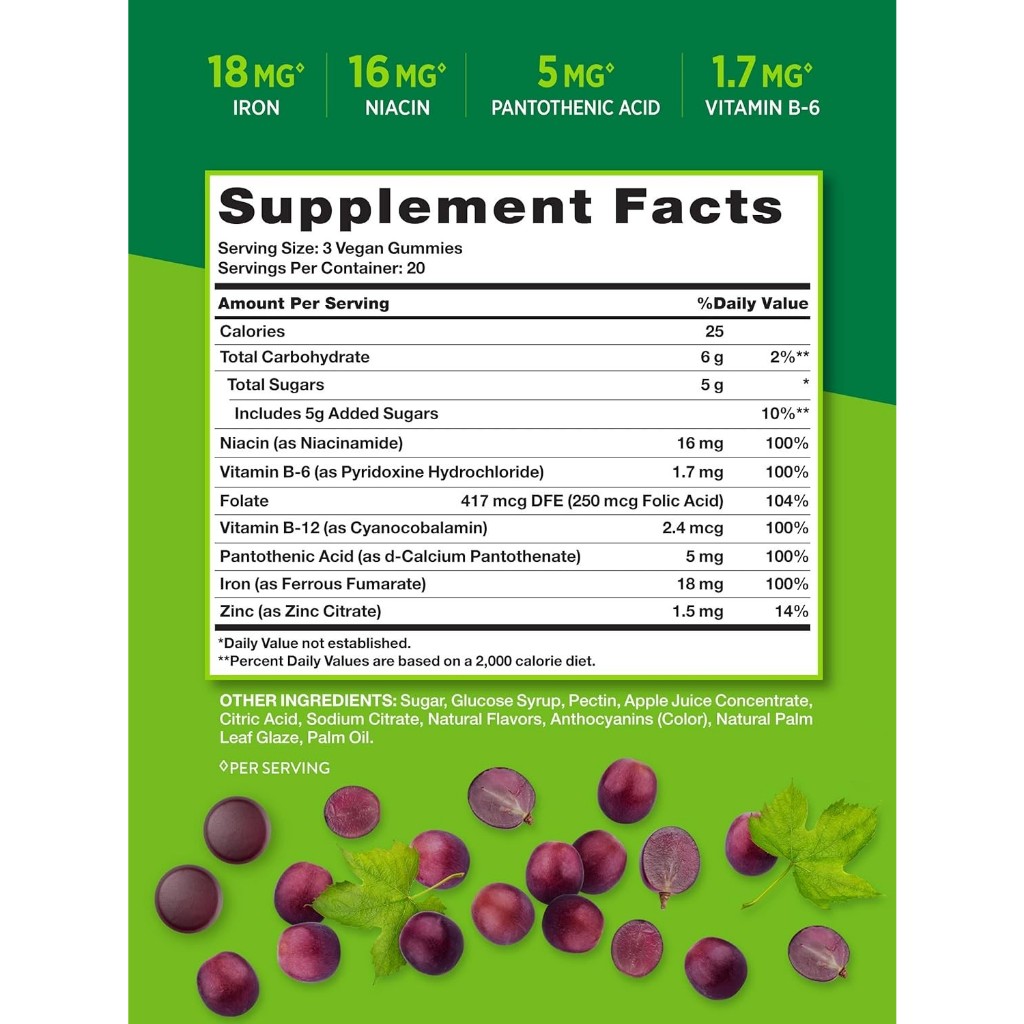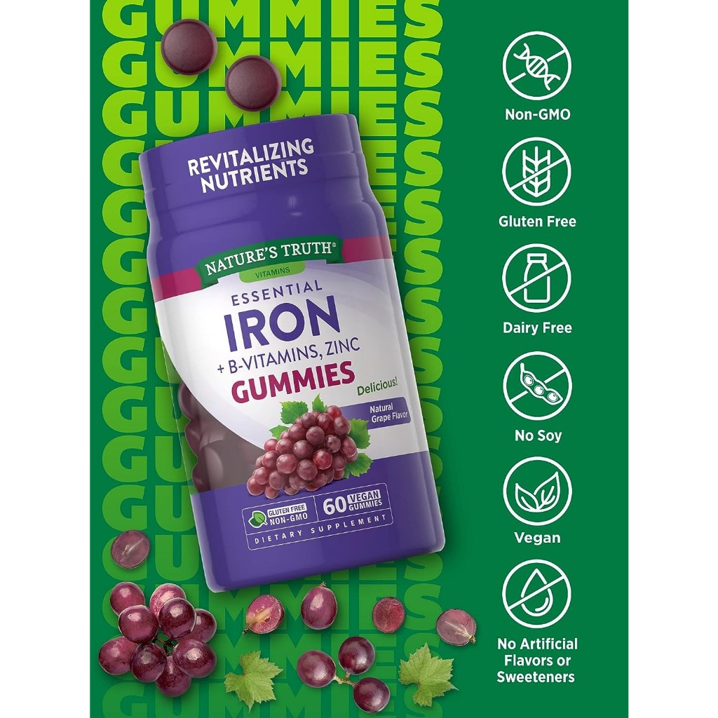 Nature's truth Essential IRON gummies + B-vitamins zinc 60gummies